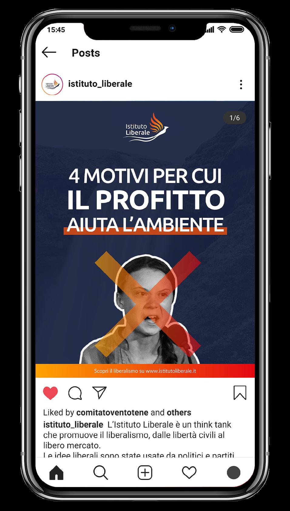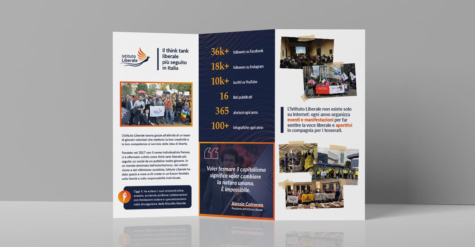 Istituto Liberale is a political-cultural think tank, the largest of its kind in Italy with a classical liberal orientation, dedicated to promoting liberalism and advocating for liberal principles. Before assuming the role of Chief Design Officer in October 2022, I volunteered at the institute. Within the team, my responsibilities include communication, graphic design, content strategy, and marketing. In addition to solidifying the visual identity, I have designed various promotional and exhibition artifacts. I conducted user research and analyzed target audience behaviors, resulting in effective marketing campaigns. I have also created numerous graphics for social media platforms, particularly Instagram and Facebook, which have garnered thousands of likes. By combining impactful and catchy headlines with clear and effective information design, the graphics have successfully captured attention and engagement.