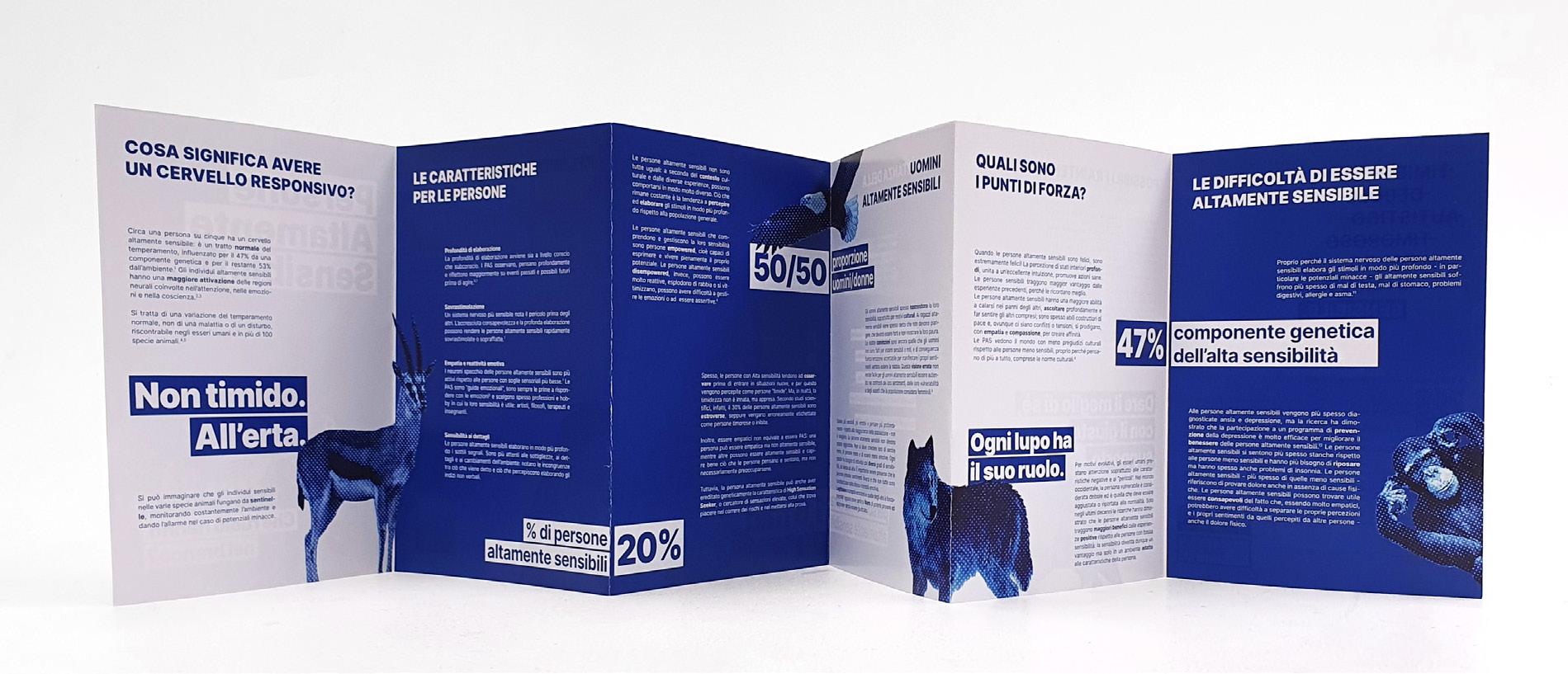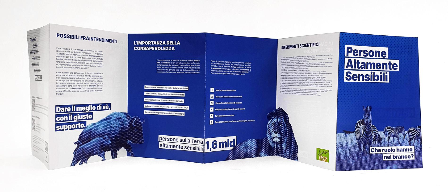 Our group's objective was to communicate and raise awareness among a specifically male target audience, who generally have reservations about certain topics, through an informative brochure. Through further exploration of the topic and analyzing the target audience, we realized that two elements would be particularly effective: data - numerical, direct, and explicit - and animals, which have always benefited from the presence of highly sensitive individuals for detecting and reacting to dangers. The brochure we designed was later published in 2023 by HSP Switzerland (High Sensitive Persons).