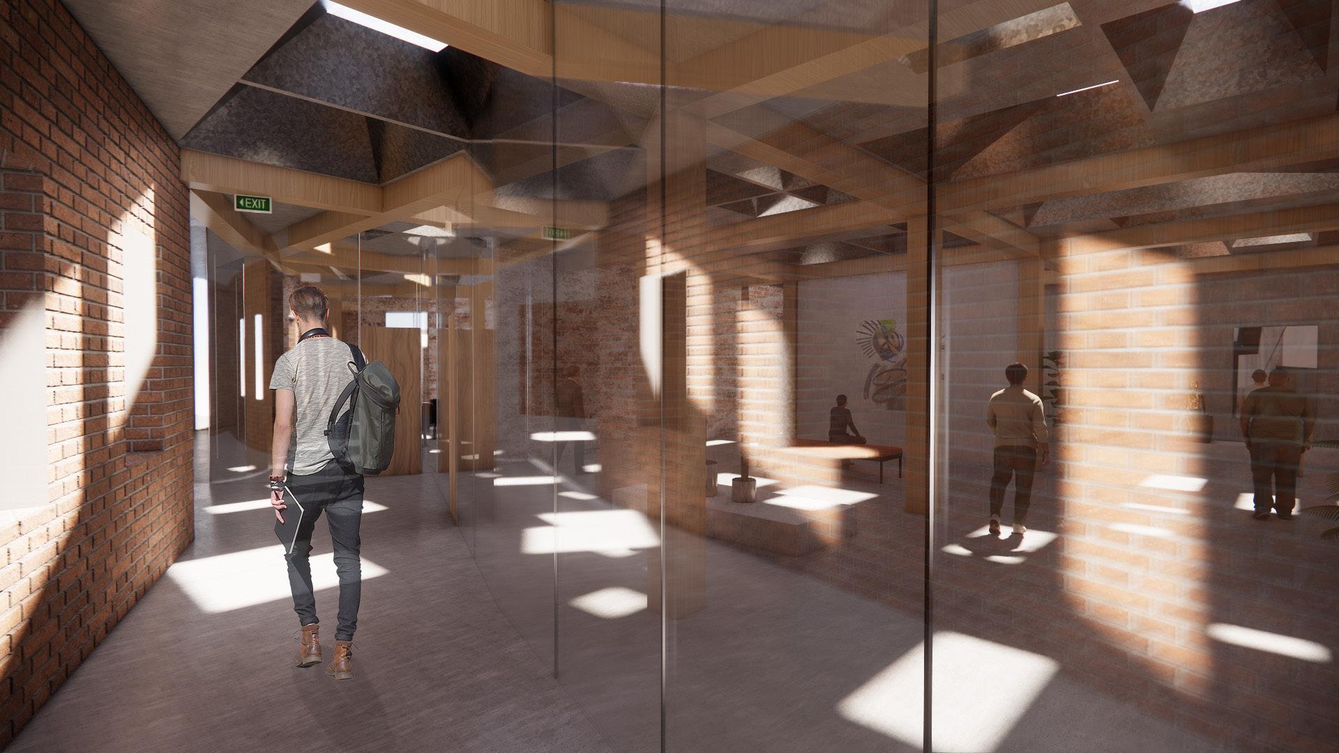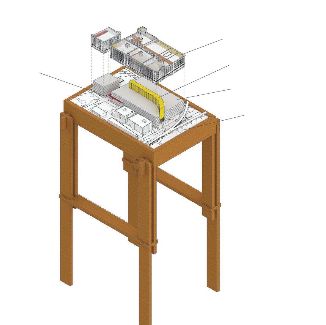 This studio was in cooperation with a studio at Kansas State University that focused on the Gateway South development project happening just south of the Arch Grounds in downtown St. Louis. The building of focus was once used by Cruden Martin Co. that produced kites and eventually tin helmets during World War II. As of now, the building serves as the office space for a local construction company. Good Development Group, a St. Louis construction development company, decided to buy the building and most of the area south of the Arch, with the intention to make the area a construction hub for the U.S. with its convient location. Cruden Martin would serve as a modular construction space, but what else would it serve? With the idea of getting the public more involved with the downtown scenary, Cruden Martin would also serve as a material library: a space in which the public can come and learn about various materials and also experience the construction and architectural advancements happening in real time.