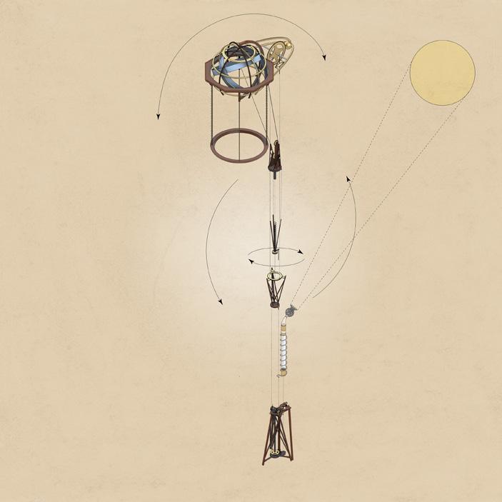 Starting off by gathering a handful of objects from the Museo Galileo, the idea of keeping the detailed proportioanlity of the objects, but scaling their functions came into play with the creation of a mobile sun powered shading device. This would then be set as a base for our initial massing iteration that consisted of various shading mechanisms.