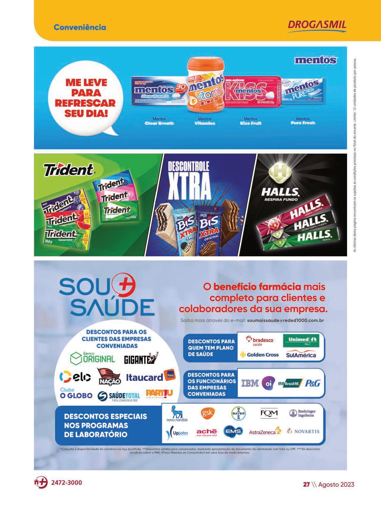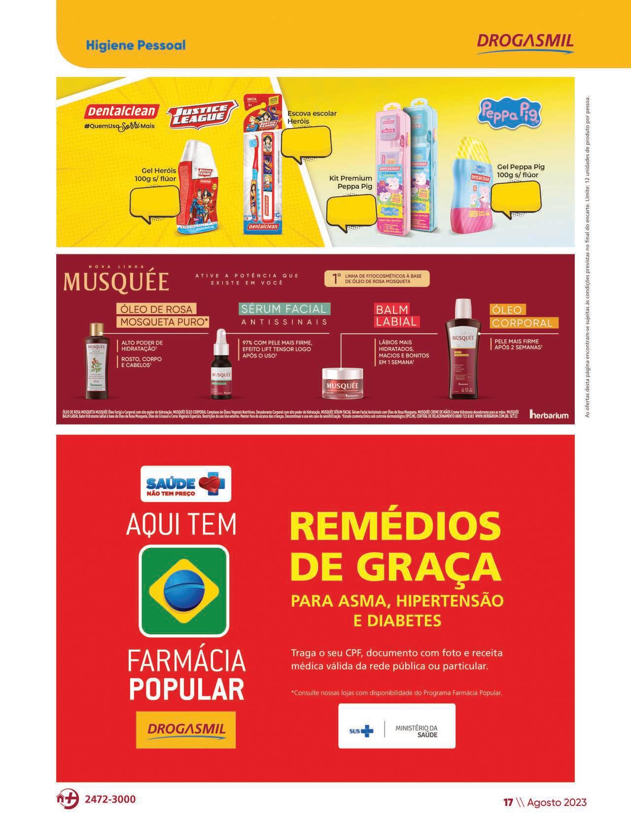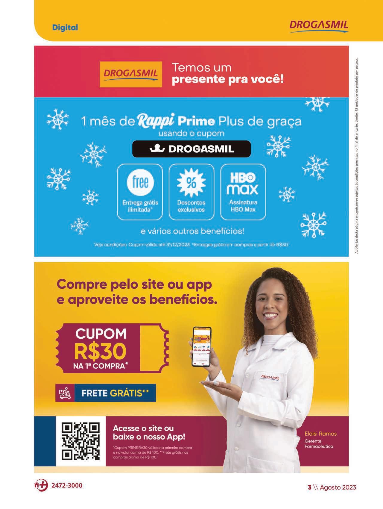 41,71 31,90 SALSEP JET SOLUÇÃO NASAL 9mg/ml 100ml Cloreto de Sódio Reg MS: Isento 185,14 121,99 IUMI 72 COMPRIMIDOS Drosperinona + Etinilestradiol Reg MS: 1003301540020 11,46 8,29 GLIFAGE XR 500mg 30 COMPRIMIDOS Cloridrato de Metformina Reg MS: 1008903400031 99,31 69,99 BENICAR ANLO 40+5mg 30 COMPRIMIDOS Olmesartana Medoxomila, Besilato de Anlopidino Reg MS: 1045401750057 50,69 39,59 KOIDE D XAROPE 120ml Maleato de Dexclorfeniramina, Betametasona Reg MS: 004313810018 62,82 47,99 PROLOPA BD 100+25mg 30 COMPRIMIDOS Levodopa Cloridrato de Benserazida Reg MS: 1010000640142 52,96 40,29 ANCORON 200mg 30 COMPRIMIDOS Cloridrato de Amiodarona Reg MS: 1003300010141 56,94 44,99 VITANOL-A 0,025% CREME DERMATOLÓGICO 30g Tretinoína Reg MS: 1010703400013 96,49 17,99 ARADOIS 50mg 60 COMPRIMIDOS Losartana Potássica Reg MS: 1097401210251 27,58 17,99 AEROLIN SPRAY 100mcg 200 DOSES Sulfato de Salbutamol Reg MS: 1010702260031 28,57 22,99 MICROVLAR 0,15 0,03mg 63 DRÁGEAS Levonorgestrel, Etinilestradiol Reg MS: 1049714930022 30,41 23,69 BUSONID 32mcg SUSPENSÃO NASAL 6ml 120 DOSES Budesonida Reg MS: 1121301730290 23,95 15,99 ASPIRINA PREVENT 30 COMPRIMIDOS Ácido Acetilsalicílico Reg MS : 1705600220037
