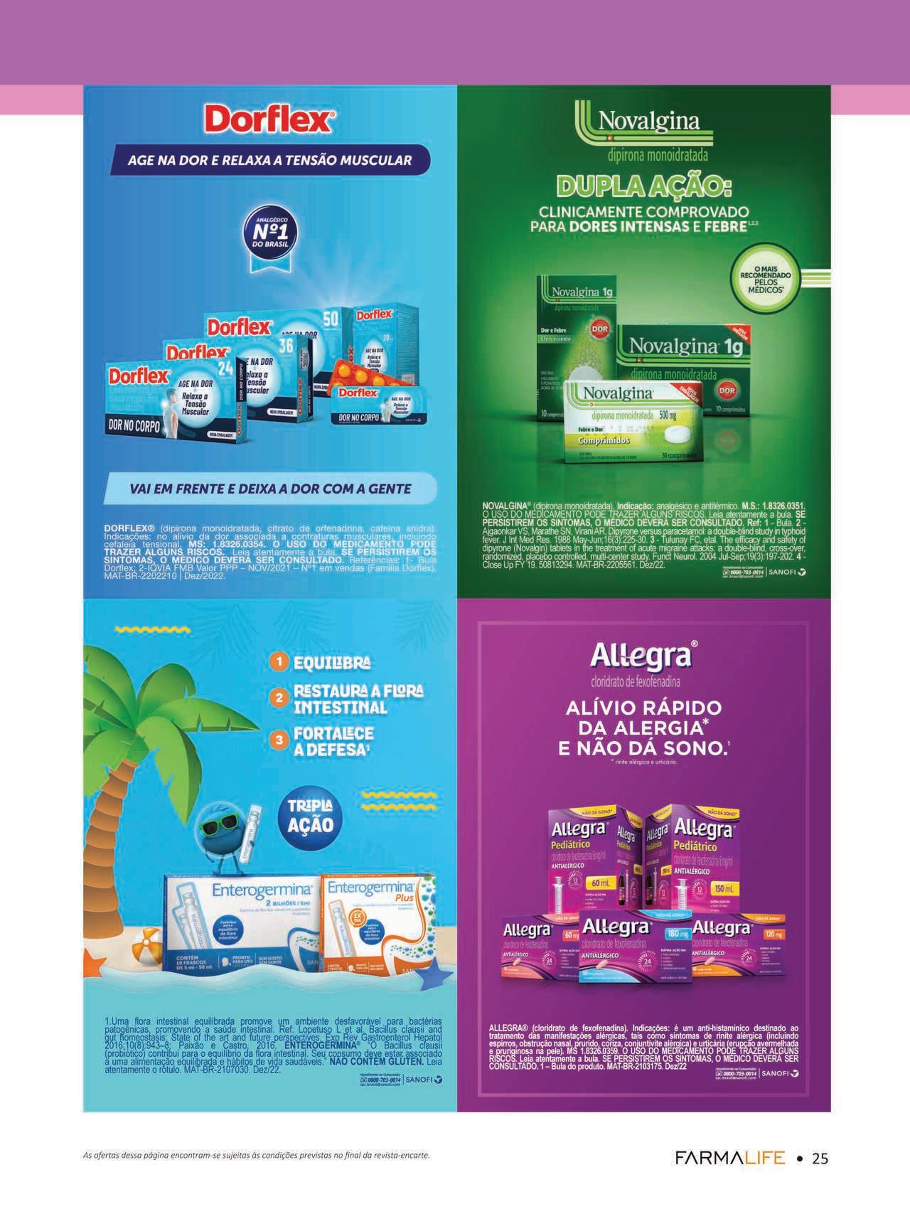 27,58 17,99 AEROLIN SPRAY 100mcg 200 DOSES Sulfato de Salbutamol. Reg. MS: 1010702260031. 53,92 44,99 VITANOL-A 0,025% CREME DERMATOLÓGICO 30g Tre noína. Reg. MS: 1010703400013. 95,53 17,99 ARADOIS 50mg 60 COMPRIMIDOS Losartana Potássica. Reg. MS: 1097401210251. 27,04 22,99 MICROVLAR 0,15 0,03mg 63 DRÁGEAS Levonorgestrel, E nilestradiol. Reg. MS: 1049714930022. 68,84 57,09 AVAMYS 27,5mcg SPRAY NASAL 120 DOSES Princípio ativo: Furoato de Fluticasona Reg MS: 1010702710035 74,21 62,09 EBASTEL 1mg XAROPE 60ml Princípio A vo: Ebas na. Reg. MS: 1004307600031. 72,35 58,99 EBASTEL 10mg 10 COMPRIMIDOS Princípio A vo: Ebas na. Reg. MS: 1004307600015. 28,81 23,39 BUSONID 32mcg SUSPENSÃO NASAL 6ml 120 DOSES Princípio a vo: Budesonida. Reg. MS: 1121301730290. 175,32 127,99 IUMI 72 COMPRIMIDOS Drosperinona + E nilestradiol. Reg. MS: 1003301540020. 10,85 8,29 GLIFAGE XR 500mg 30 COMPRIMIDOS Princípio A vo: Cloridrato de Me ormina. Reg. MS: 1008903400031. 94,05 69,99 BENICAR ANLO 40+5mg 30 COMPRIMIDOS Princípio ativo: Olmesartana Medoxomila, Besilato de Anlopidino Reg MS: 1045401750057 47,98 39,99 KOIDE D XAROPE 120ml Princípio a vo: Maleato de Dexclorfeniramina, Betametasona. Reg. MS: 004313810018. 95,58 73,49 CONCOR 5mg 30 COMPRIMIDOS Princípio a vo: Hemifuramato de Bisoprolol. Reg. MS: 1008901940039. 59,49 47,99 PROLOPA BD 100+25mg 30 COMPRIMIDOS Princípio a vo: Levodopa, Cloridrato de Benserazida. Reg. MS: 1010000640142. 52,96 41,29 ANCORON 200mg 30 COMPRIMIDOS Cloridrato de Amiodarona. Reg. MS: 1003300010141. 29,54 13,39 SULFATO DE NEOMICINA + BACITRACINA POMADA 50g Medley. Reg. MS: 1832600750021. Ref.: Nebace n. DICLOFENACO DIETILAMÔNIO 10mg/g 60g 11,39 Medley. Reg. MS: 1832601420017. Ref.: Cataflam. 22,78 PANTOPRAZOL 20mg 28 COMPRIMIDOS 8,99 Medley. Reg. MS: 1832601870039. Ref.: Pantozol. 17,98 NISTATINA + ÓXIDO DE ZINCO POMADA 60g 10,99 Medley. Reg. MS: 1832601510024. Ref.: Dermodex. 21,98 HIDROCLOROTIAZIDA 25mg 30 COMPRIMIDOS 2,99 Medley. Reg. MS: 1832604300063. Ref.: Clorana. 5,98 DICLOFENACO POTÁSSICO 50MG 20 COMPRIMIDOS 5,99 Medley. Reg. MS: 1832601030014. Ref.: Cataflam 11,98 LOSARTANA POTÁSSICA 50mg 30 COMPRIMIDOS 3,99 Medley. Reg. MS: 1832601550026. Ref.: Cozaar 7,98 58,99 35,99 NITAZOXANIDA 500mg 6 COMPRIMIDOS Althaia. Reg. MS: 1351700320066. Ref.: Annita. 86,48 25,99 FINASTERIDA 1mg 30 COMPRIMIDOS EMS. Reg. MS: 1023506360029. Ref.: Propecia. 33,21 11,99 BROMOPRIDA 10mg 20 COMPRIMIDOS Pra . Reg. MS:1256801800017. Ref.: Digesan. 12,86 8,99 ALBENDAZOL 40MG 10ML Biosinté ca. Reg. MS: 1121303960013. Ref.: Zentel. NIMESULIDA 100mg 12 COMPRIMIDOS 5,99 Biosinté ca. Reg. MS: 1057306530014. Ref.: Nisulid 11,98 18,02 5,49 CITRATO DE SILDENAFILA 50mg 4 COMPRIMIDOS Pra Donaduzzi. Reg. MS.: 1256802610335. Ref.: Viagra.