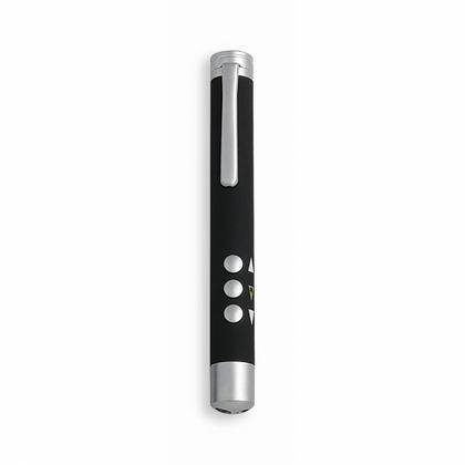 Puntero láser de clase 1 de diseño rompedor, con conexión USB y suave acabado. Especialmente diseñado para presentaciones PowerPoint y Keynote, incorpora luz led y pulsadores de activación laterales, con botones de avance, pausa y retroceso. Pilas de botón incluidas. Presentado en elegante y resistente estuche de cartón negro con suave esponja troquelada.
