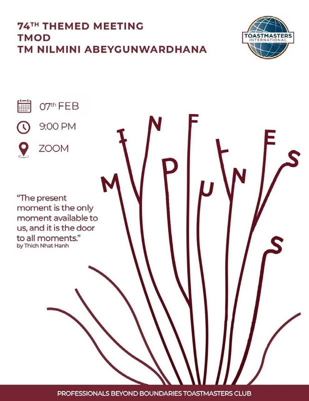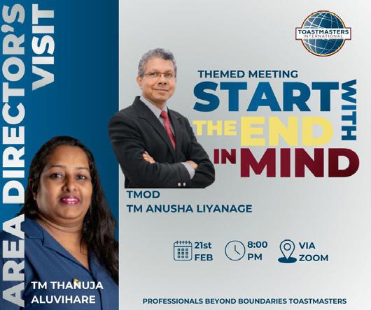 Initially, I wanted to join Toastmasters during the COVID-19 time because I wanted to improve my communication skills. I was able to join the Kandy Toastmasters club, which had started conducting virtual meetings due to the restrictions that had been imposed. After seeing my growth, I realised that growth can also be achieved by helping others. TM Methsiri Herath and TM Chandra Herath were planning to start a Toastmasters Club for Dental Surgeons, and I pitched the idea of a club for all professionals to them. And so, the Professionals Beyond Boundaries Toastmasters Club was born.