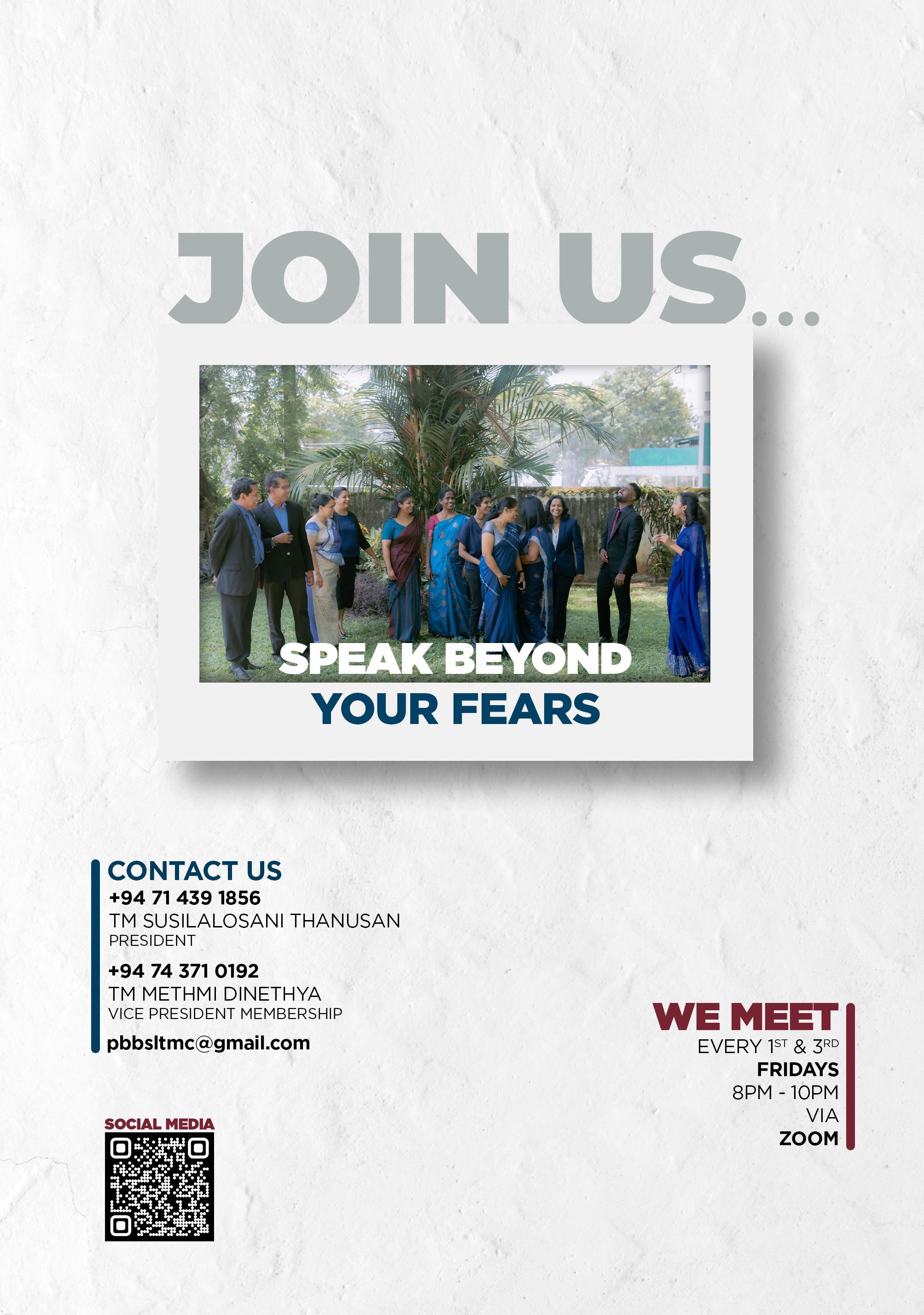 Abegunawardhana, a close friend and ally, shared this vision, and together, with the support of a dedicated group of professionals, we founded the Professional Beyond Boundaries Toastmasters Club (PBBTMC) on October 20, 2022, under the guidance of Area Director, TM Methsiri Herath. Toastmaster Anushe Liyanage, a charter member, proposed the club’s name, reflecting our mission to unite professionals and help them grow beyond their limits.