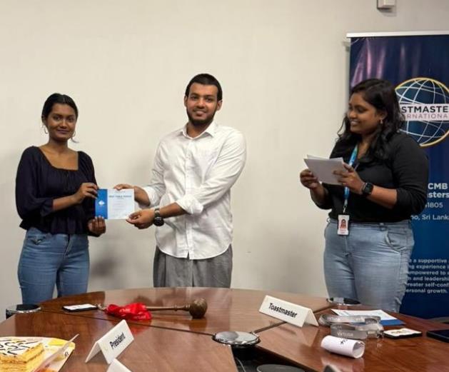 From personal stories to motivational messages, each speaker showcased their unique style and passion. Toastmasters Aamir, Nadeeka, and Malinda reached first, second, and third places, respectfully. They demonstrated quick thinking and eloquence in the impromptu speaking round. Their ability to tackle unexpected topics with grace and wit was commendable.