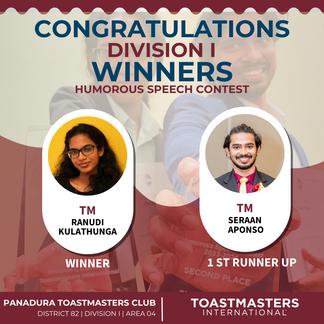 HumorousSpeechContest (DivisionI) Winner-TMRanudiKulathunga 1stRunnerUp-TMSeraanAponso