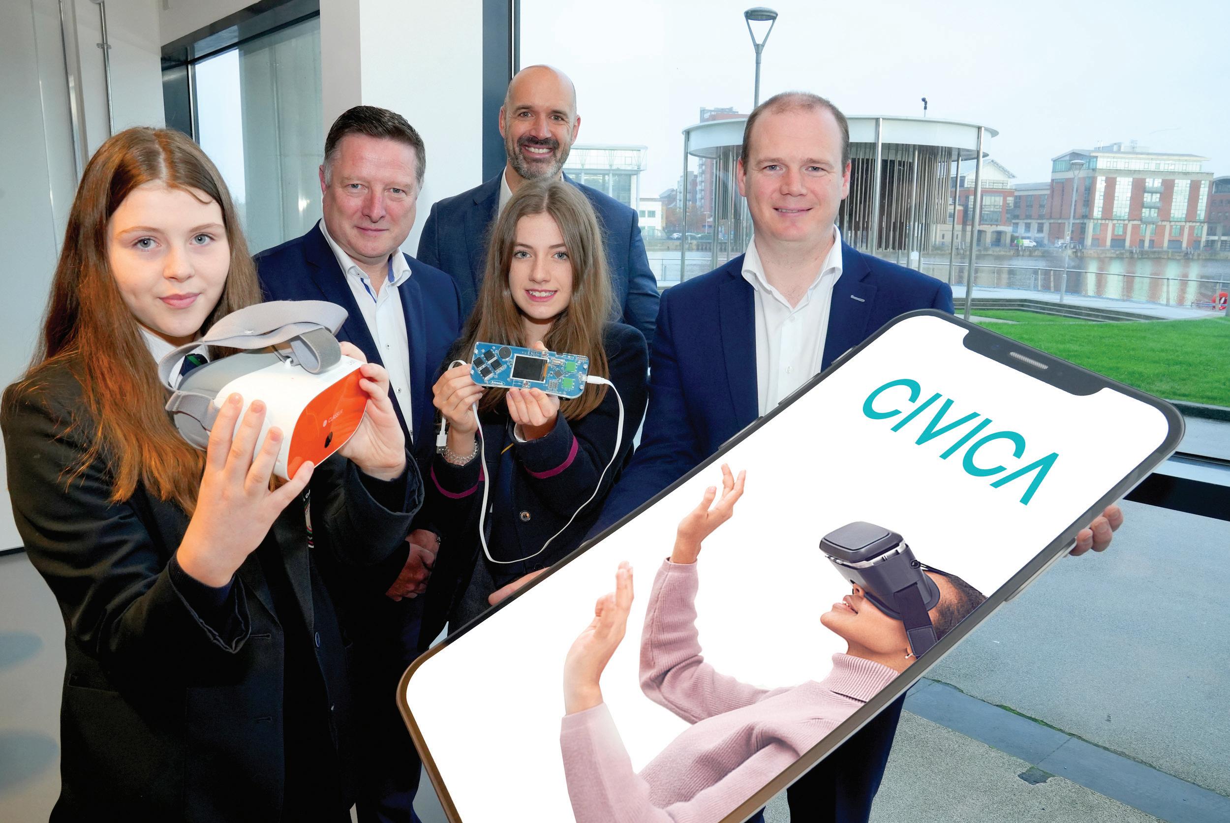Gordon Lyons (Economy Minister), Mark Owens (Civica NI Managing Director) and students from St. Patrick’s College, Dungannon celebrated the return of NI Digital Awareness Week to Belfast recently.