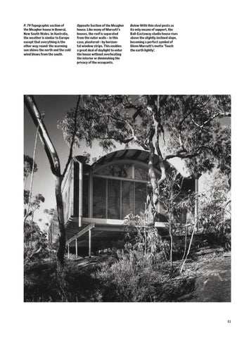 P. 79 Topographic section of the Meagher house in Bowral, New South Wales. In Australia, the weather is similar to Europe except that everything is the other way round: the warming sun shines the north and the cold wind blows from the south.
