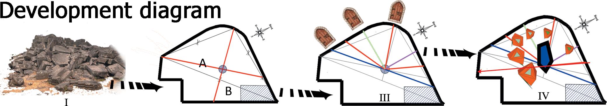 To bring order to the remnants, each gate symbolically assigns a stone to its axis. This gesture ensures camouflage through a volumetric composition characterized by introversion at the macro scale, culminating in a central forum reminiscent of Wast eda.