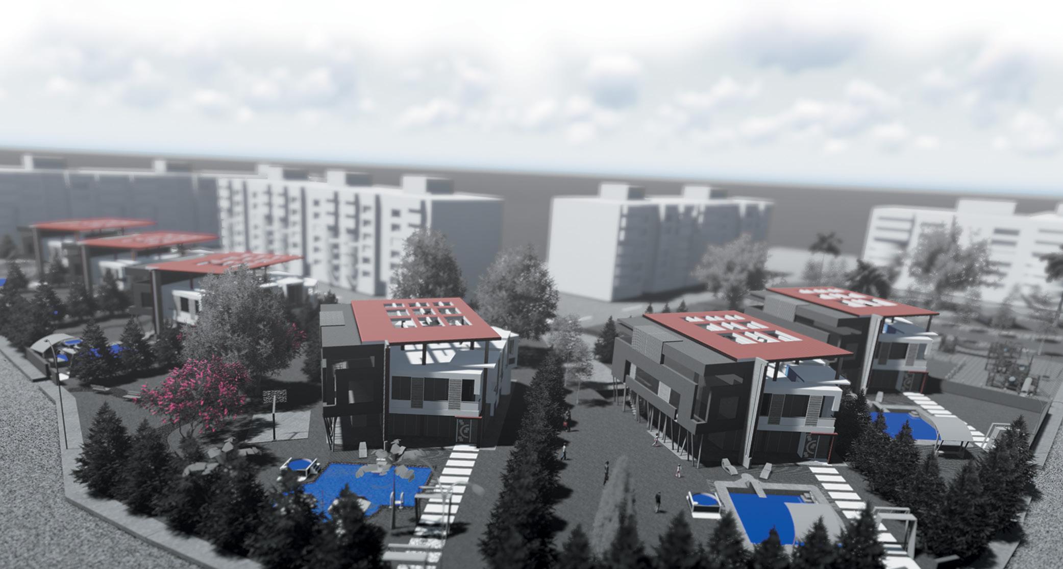 Beyond its architectural form, the project fosters social interaction and aims to bridge social divides by creating a neighborhood where apartment blocks and detached houses coexist harmoniously within the same site.