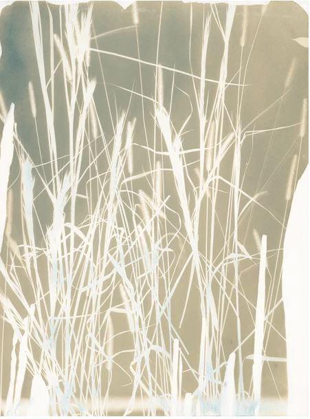 For example, I can make the choice to pour or paint the emulsion on the paper, but then it is mostly up to chance as to how that emulsion will flow and dry. I can plan to expose for a set amount of time, but a cloud may come along to alter the sunlight or a breeze may blow away parts of the plant material I use for the composition! I believe this synergy between control and chance creates an important tension in the work.