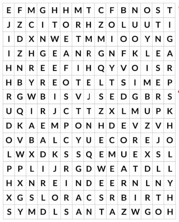 Search CHRISTMASWORD 26 WORDSTOFIND! Carols Elves Lights Presents Santa Rudolph Tree Cookies Gingerbread Mistletoe Reindeer Stockings Sleigh December Holly Ornaments Wreath