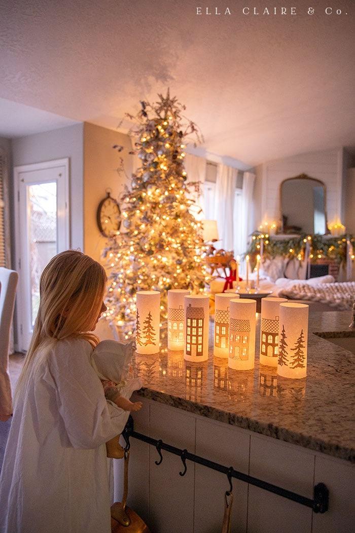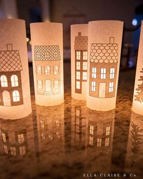 s://www ellaclaireinspired com/christmas-village-luminaries/ Downloadandprintthehousesandtrees(fromthelinkbelow) Precisionknife Batteryoperatedcandlesorfairylights Tape Youneed Afterprintingoffthehouses,useaprecision knifetocutoutthewindows Thisstepisn't completelynecessary-itisstillcutewithout doingit-butyouwilllovethewayitletsouta littleextralightandaddsalittlemore dimensiontotheendresult Itistotallyworth theextrafewminutesittakes Youcoulduseastrandoffairylightsorbattery operatedcandles Ifyoupurchasetheones thatflicker,itwilllookmorelikearealcandle Add3piecesoftapealongonesideofthe paperandrollthepaperbackaroundonitself toformacirculartube,securingonesideto theother Overlapthesidesjustslightly, maybe1cm(justenoughtocoverthewords printedontheedge),whichmakesthetube morestructurallysound Linkthetapeyou liketouseupabove(itislessnoticeablethan othertapes)butreally,anycleartapewilldo StepOne StepThree StepTwo CHRISTMASVILLAGE LUMINARIES 10