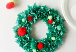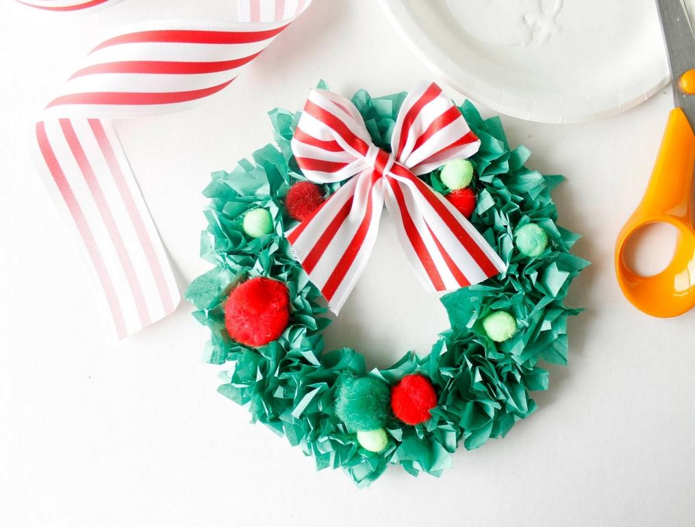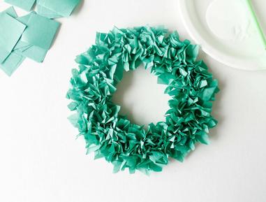 s://www fun365 orientaltrading com/project/tissue-paper-christmas-wreath-craft DIYUnfinishedWoodSmallFloral&CraftRings Orcardboardtomakeyourownring TinyPom-Poms-500Pc Red&WhiteStripedSatinRibbon Glue Poursomecraftglueonapaperplateandsetto theside Takethegreentissuepapersquares andwrapthemaroundtheeraserendofa pencil Dipintothecraftglueandplaceonthe DIYunfinishedwoodring Ifthekidswantmore instruction,youcanhavethemstartonthe insideoftheringandworktheirwayout Some kidsmayjustwanttoplacethetissuepaper squareswhereevertheywant,whichisfinetoo Addingthepom-pomsisthenextstep Let thekidschoosewhichpom-pomstheywant Theycoulddoanycolor,butit'skindafunto stickwithChristmascolors Theyjustneedto diponesideofthepom-pomsintotheglue andplaceonthetissuepaper Oncethetissuepapersquareshavecovered thewoodring,andthegluehasdriedabit, havethekidspressdownslightlyonthetissue paper Thiswillspreadoutthegluedontissue paper UsingsomeChristmasribbon,addalittle bowtothewreath Justplacesomeglueon thebackoftheribbonandpresstoplaceon thewreath Itiedthebowforeachofthe wreaths,butyoucouldletthemmaketheir own Watchthekidsenjoytheadorable TissuePaperChristmasWreaththeyjust made StepOne StepFour StepThree StepTwo 5 Scissors Pencil