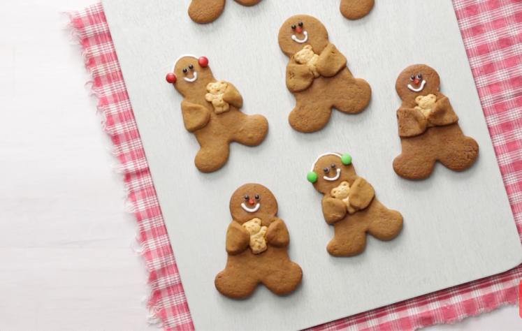 Preheatovento350° Onalightlyflouredsurface,rolleachportionof doughto 1cmthickness Cutwithan8cmgingerbreadmancookie cutter Place5cmapartonungreasedbakingsheets Placeabearshapedcracker,CinnamonChexpieceorminishreddedwheatpiecein centreofeachcookie Gentlyfoldcookiearmstowardcrackerorcereal piece;presslightlytoadheretobear Bake12-14minutesoruntiledgesarefirm Coolonpans2minutes Removetowirerackstocoolcompletely