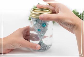 s://www shutterfly com/ideas/mason-jar-snow-globe/ Treeornament Glitter(2tablespoonsperglobe) Clearglue(50gperglobe) Warmwater(1cupperglobe) Masonjar Spoon Gluegun Youneed Secureyourornamenttothelid Usingagluegun,carefullygluethebottomof yourtreeornamenttothemasonjarlid Make suretouseenoughgluetosecurethe ornament Setasidetodry Addglitterandstir Pourin2tablespoonsofglitter(silverorwhite glitterworksbest) Thenstirthoroughlywitha spoon Addcleargluetoyourjar Addapproximately50g ofclearglueintoyour jar Addwarmwaterandstir Pour1cupofwarmwaterintoyourjarand stirthemixturewithaspoon Placethelid Takethelidwithyourornamentandplace itfacedownintothemasonjar Thelid shouldrestevenlyonthejar’stoprim Sealthejartightly Taketheouterpieceofthejar’slidand secureittightly Giveitanextratwistto ensurethejaristightlysealed Addglueto thelidtopreventanyleakingifneeded StepOne StepFour StepThree StepTwo MASONJAR SNOWGLOBE 3