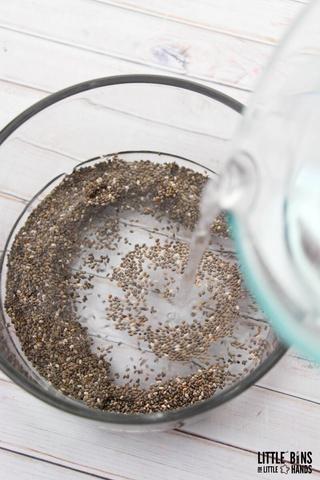 s://littlebinsforlittlehands com/chia-seed-edible-slime-recipe-borax-free/ 1/4cupchiaseeds 13/4cupswater 2-4cupscornstarch FoodColouring(optional) Youneed Placethechiaseedsinalargebowlandaddthe wateroverthetop Coverthebowlwithplasticwrapandplacein thefridgeoronthecounterinasafeplace After12-36hours,thechiaseedswillbeready tomakeslime Addfoodcolouringasdesiredtoallowthe chiaseedsandtheslimetobecomecoloured Rememberyouareaddingwhitecornstarch, soyouwillnotendupwithatrulybright colour Slowlystirinthecornstarch–afterthe2cup markyouwillneedtostartkneadingthe cornstarchinasitwillbecomeincreasingly difficult Useyourpersonalpreferencetodetermine whentostopaddingcornstarchbutdonot exceed4cups StepOne StepFour StepThree StepTwo CHIASEEDSLIME RECIPE 9
