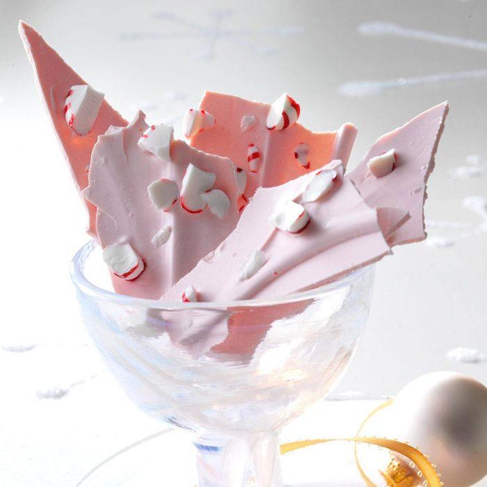 Stirinthecrushedcandies,peppermintextractandfood colouring Spreadontowaxedpapertocoolcompletely Breakintosmallpieces;storeinanairtightcontainer Enjoy!