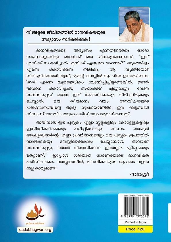 ആമുഖം മനുഷ്യ ജീവിതം എല്ലാവരം ജീവിക്കുന്നു. ജനിച്ചു, പഠിച്ചു, ജജാലി ജനടി, വിവാഹം കഴിച്ചു, അച്ഛനായി, മുത്തച്ഛനായി, പിന്നെ മരിക്കുന്നു. ഇത് ജീവിത ക്രമം ആയിരിക്കുജമാ? ഇങ്ങന്നന ജീവിക്കുെതിന്നെ അർത്ഥന്നമന്താണ്? എന്തുന്നകാണ്ടാണ് നിങ്ങൾ ജനിജേണ്ടത്? ജീവിതത്തിൽ എന്താണ് ജനജടണ്ടത്? നിങ്ങൾ മനുഷ്യശരീരംജനടിയിരിക്കുന്നു,അതിനാൽനിങ്ങൾസ്വയംമനുഷ്യ മതത്തിൽ ആയിരിേണം. മാനവികതജയാന്നടാപ്പമായിരിേണം, അജപ്പാൾമാത്രജമജീവിതംഅനുഗ്രഹീതന്നമെ്വിളിേന്നപ്പടുകയുള്ളൂ. മാനവികതയുന്നട നിർവ്വചനം സ്വയം തീരമാനിജേണ്ടതാണ്. 'ആന്നരങ്കിലം എന്നെ ഉപദ്രവിച്ചാൽ എനിേ് അത് ഇഷ്ടമല്ല, അതിനാൽ ഞാൻ ആന്നരയും ഉപദ്രവിേരത്.' ഈ തത്തവം ജീവിതത്തിന്നല എല്ലാ പരിശീലനങ്ങളിലം അനുജയാജയമായി (പ്രവർത്തനക്ഷമമായി) മാറിയ ഒരാളിൽ മുഴുവൻ മനുഷ്യതവം വന്നു കഴിഞ്ഞു. നാല് ജന്മങ്ങളുടെ ജംഗ്ഷന് ആണ് (സ്ന്ധിസ്ഥാനം) മനുഷയ ജന്മം. അവിടെ നിന്ന്, നിങ്ങള്ക്ക് നാല് ജന്മങ്ങളിലം പ ാകാന് അനുവാദം ഉണ്ട്. പേ, കാരണങ്ങള്ക് വിനിപ ാഗിക ട ടുന്നതിനാല്, ഒരാള്ക് ആ ജന്മത്തില് പ ാപകണ്ടതുണ്ട്. നിങ്ങൾ മനുഷ്യ മതത്തിൽ തുടരകയാന്നണങ്കിൽ, നിങ്ങൾ വീണ്ടം മനുഷ്യ ജന്മം കാണം, നിങ്ങൾ മനുഷ്യ മതത്തിൽ നിെ് വയതിചലിക്കുകയാന്നണങ്കിൽ, നിങ്ങൾേ് ഒര മൃഗത്തിന്നെ ജനനം ലഭിക്കും. മനുഷ്യ മതത്തിനപ്പുറം ജപാലം, സൂപ്പർ ഹൂമൻ (ദൈവിക ഗുണങ്ങളുള്ള മനുഷ്യൻ) മതത്തിജലേ് വെ് ജീവൻ മുഴുവൻ ജീവകാരണയ പ്രവർത്തനങ്ങൾോയി ന്നചലവഴിക്കുെ ഒരാൾ ജൈവഗതിയിൽ ജനിക്കുന്നു. ഒര മനുഷ്യൻ ആത്മജ്ഞാനത്തിൽ നിെ് ജീവിതത്തിൽ സ്വയം നീതി ജനടുകയാന്നണങ്കിൽ, ഒടുവിൽ അയാൾേ്ജമാക്ഷം-പരമ-പൈംജനടാൻകഴിയും.