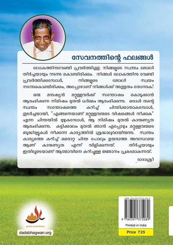 ഇല്ലാതാകാം?” അതുന്റകാണ്ടാണ് നിരതരമായ, വ്യവ്സ്ഥകള് ഒന്നും ഇല്ലാത്ത കാരുണയം അന്േഹത്തിനുള്ളില് പ്രകെമായത്. അത്ഭുതകരമായ ഒരു ആദ്ധയാത്മിക ശാസ്ത്രം അന്േഹത്തില് പ്രകെമായി. ഈ സമാഹരണത്തില്, ലെിതവം കൃതയവമായ ഉദാഹരണങ്ങെിലൂന്റെ, മറ്റുള്ളവ്ന്റര സഹായിക്കന്നതിനുള്ള ഭാവ്ത്തിലൂന്റെ, എങ്ങന്റന മനുഷയ ജീവ്ിതത്തിന്റെ ലക്ഷ്യം, എല്ലാ തരത്തിലം, എങ്ങന്റന നിറന്വ്റ്റാം എന്നതിനുള്ള തിരിച്ചറിവ്് ദാദാശ്രീ നല്കുന്നു. നമ്മുന്റെ ജീവ്ിതത്തില് ഈ തിരിച്ചറിവ്് ഒരു ലക്ഷ്യമാകി സവാംശീകരിക്കകയാണ് എങ്കില്, അന്പാള് ഈ മനുഷയജന്മംഒരുവ്ിജയമാണ്എന്ന്കണകാകാം! -ന് ാ. നീരുന്റബന് അമീന്