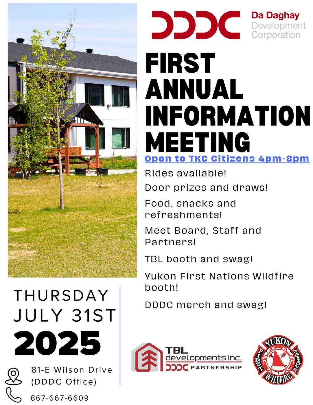 To this end, I am excited to announce our first annual information meeting will take place on July 31st, 2025. This gathering is an important step in strengthening the connection between the board and the community. During this meeting, we will share the activities we are currently undertaking and, more importantly, invite you to provide your input on the areas where you believe our efforts should be focused. Your insights are essential to shaping the path ahead and ensuring that our initiatives align with the needs and desires of the Ta’an Kwäch’än Council.