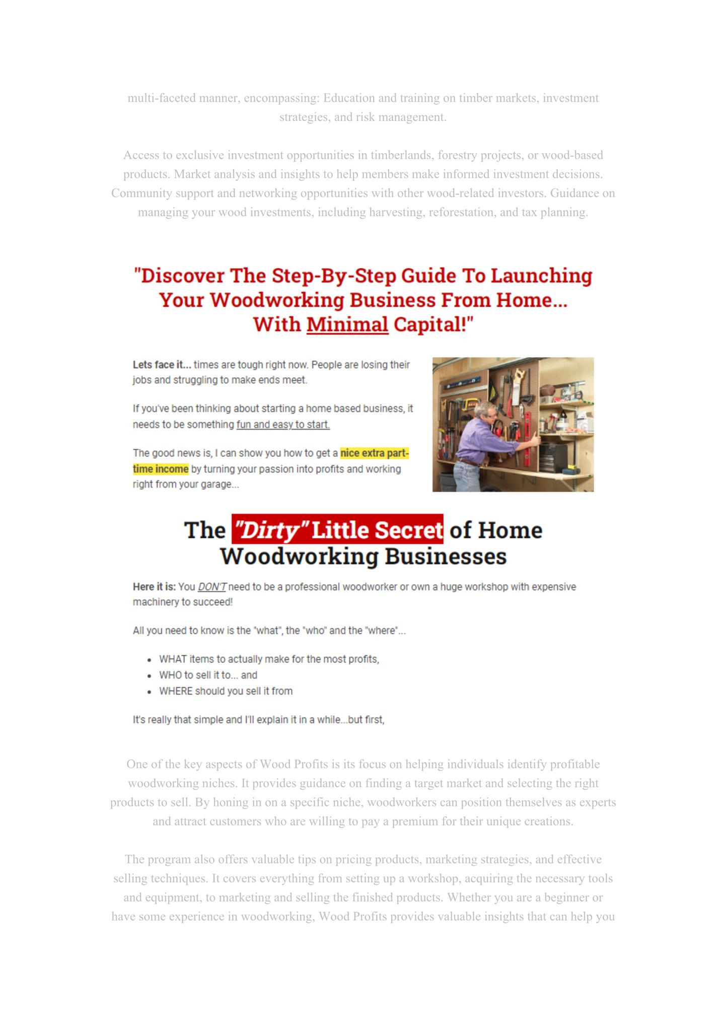One of the key aspects of Wood Profits is its focus on helping individuals identify profitable woodworking niches. It provides guidance on finding a target market and selecting the right products to sell. By honing in on a specific niche, woodworkers can position themselves as experts and attract customers who are willing to pay a premium for their unique creations. The program also offers valuable tips on pricing products, marketing strategies, and effective selling techniques. It covers everything from setting up a workshop, acquiring the necessary tools and equipment, to marketing and selling the finished products. Whether you are a beginner or have some experience in woodworking, Wood Profits provides valuable insights that can help you take your business to the next level.