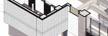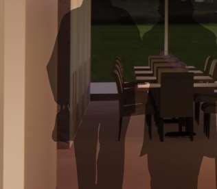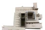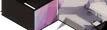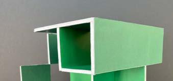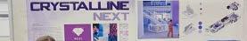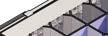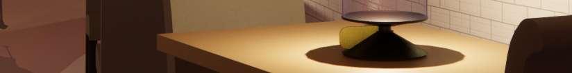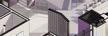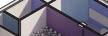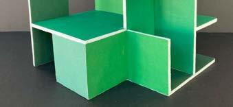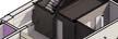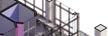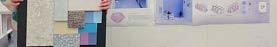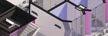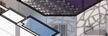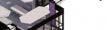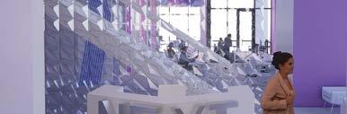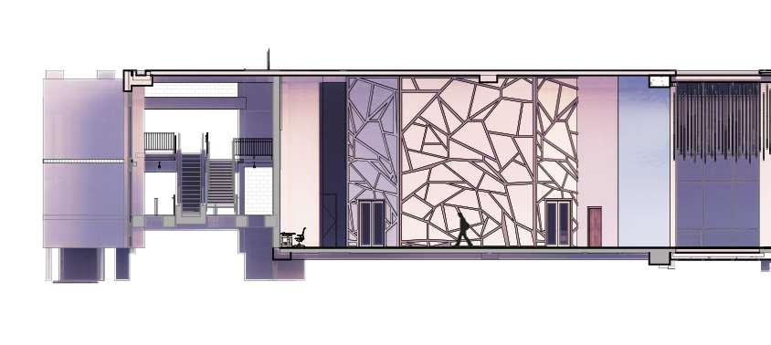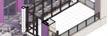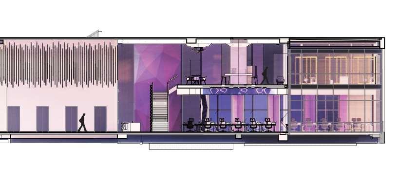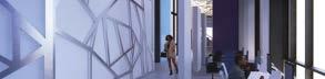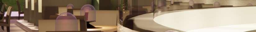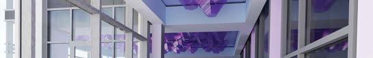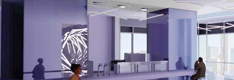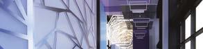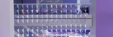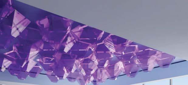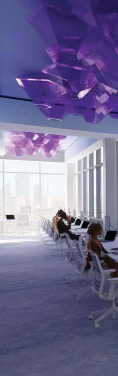 This custom light Þxture is made of a purple colored glass and molded to make gem like shapes. These lights are suspended from the ceiling and placed in a way to create order and allow light to come through them.