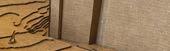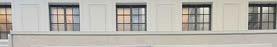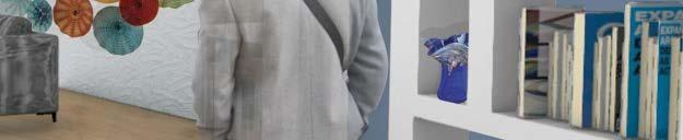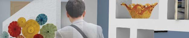 The reception space wall is created out of custom glass tiles I created that follow a geometric pattern of triangles making up a square, 1’ x 1’ tile.