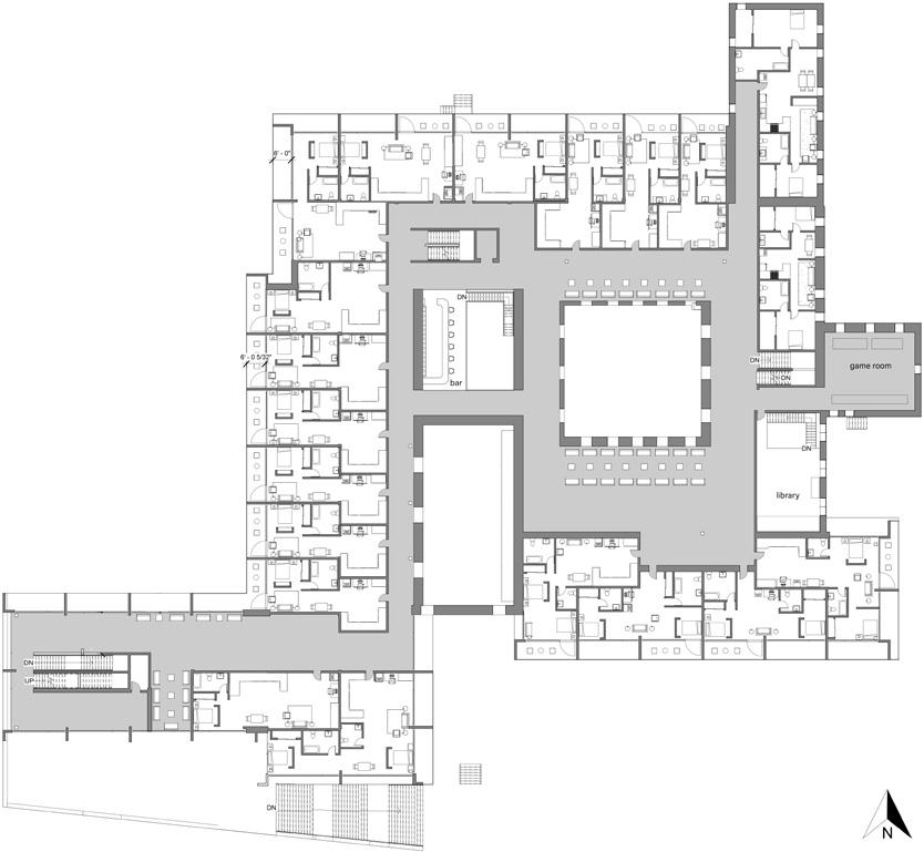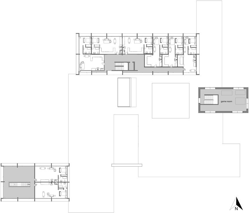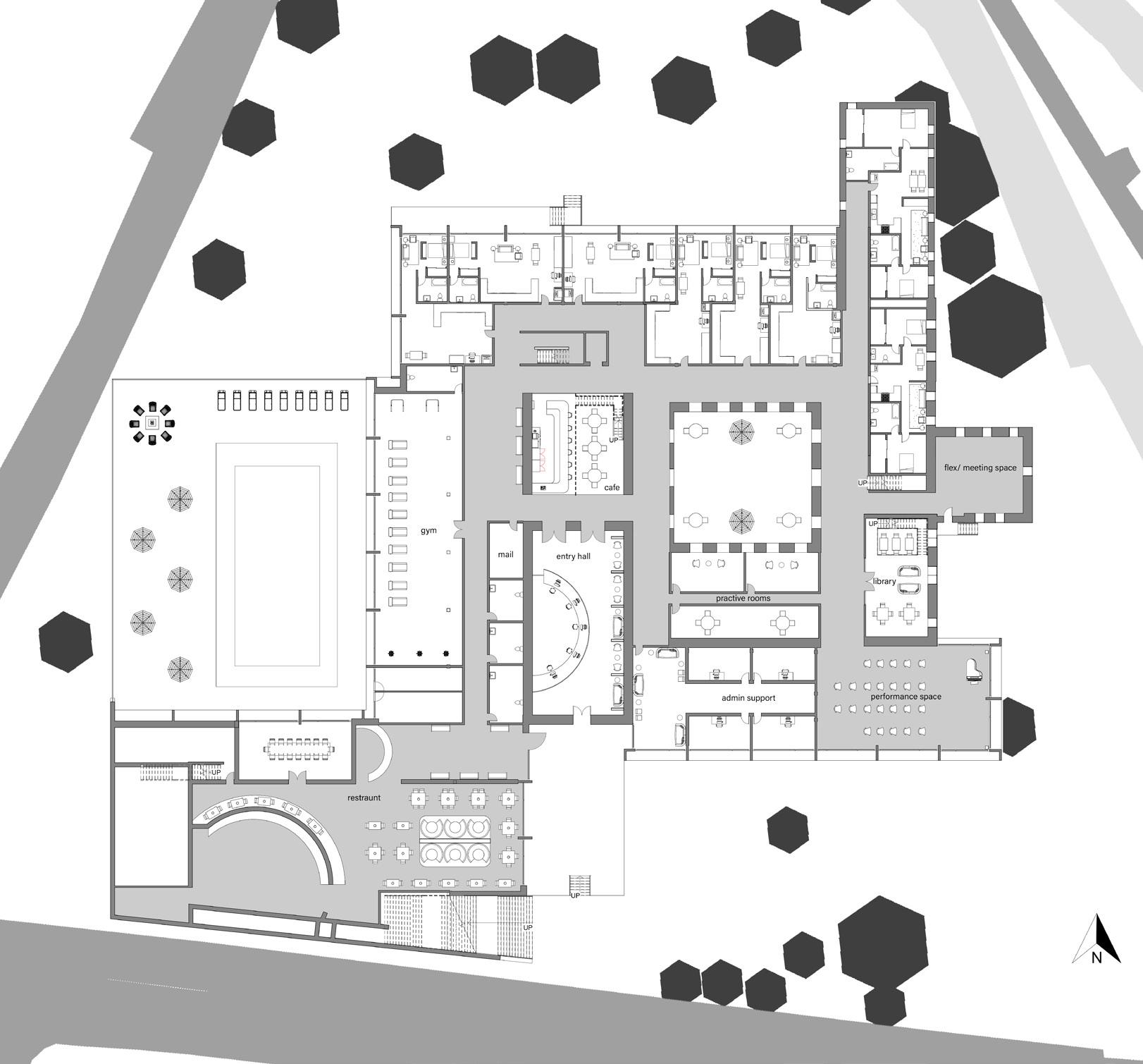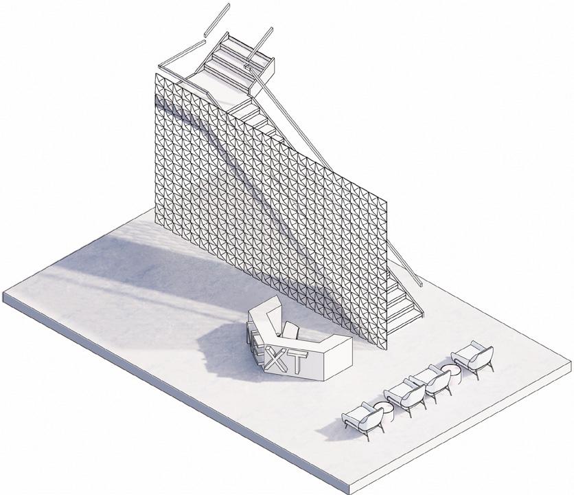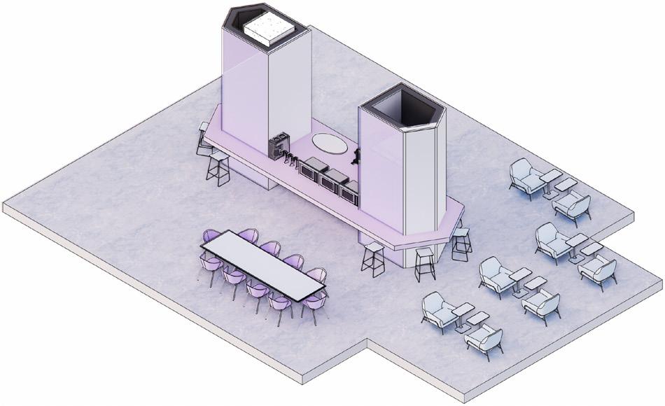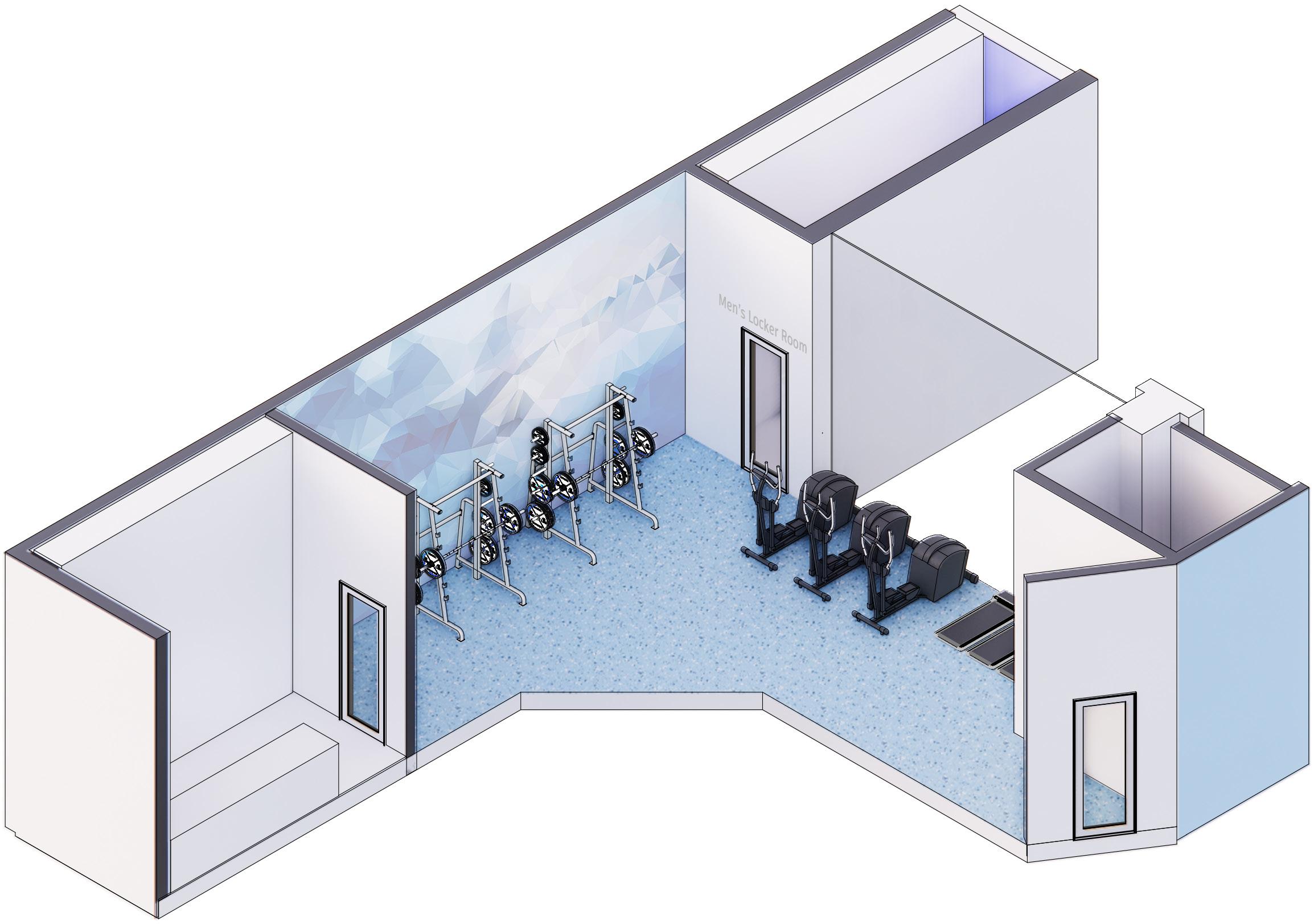 Gym AxonometricIn creating the Padderborn senior living community we were tasked to make a space in which our residents would still live a comfortable life. Designing a senior living home is a complex and thoughtful process that revolves around ensuring the well-being and comfort of its elderly residents. This endeavor demands a holistic approach, incorporating both functionality and aesthetics. The architectural design should prioritize accessibility, with wide hallways and elevators or ramps, to accommodate mobility aids like wheelchairs and walkers. The layout must facilitate socialization and community engagement, with communal areas like game rooms, libraries, and dining spaces.