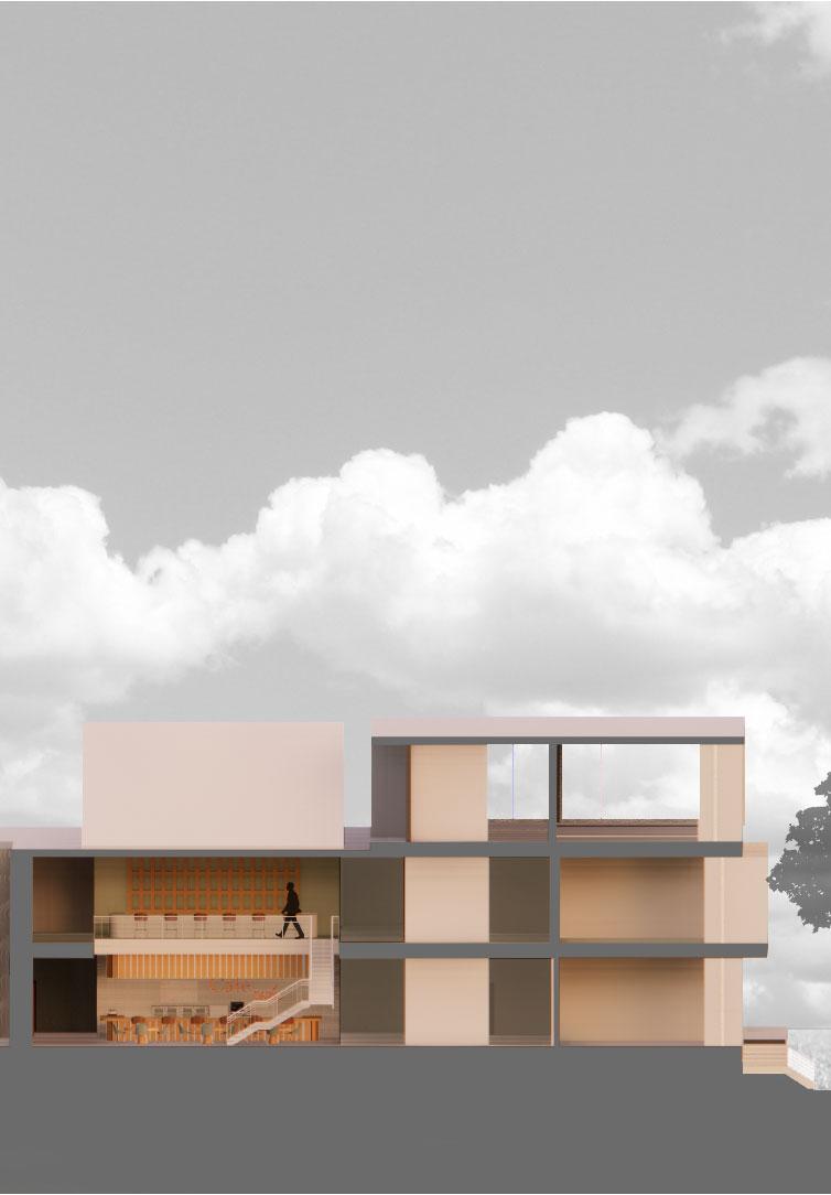 The site of this building was located in Padderborn, Germany which required a lot of research to execute the project correctly. This facility was the first major project assigned. The project was done in Revit, Enscape, Photoshop, and Illustrator.