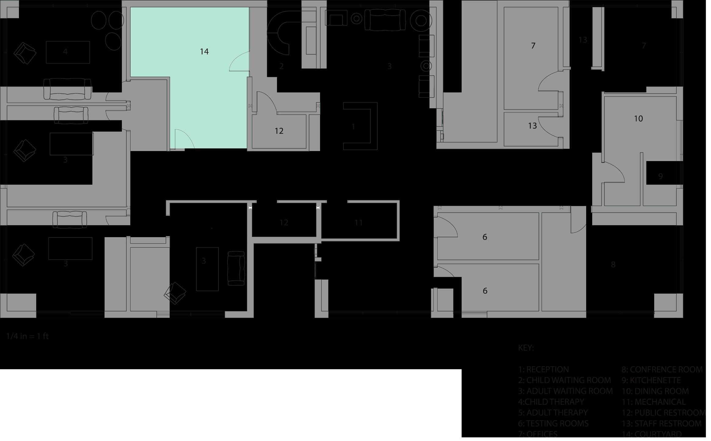 Being given a city in which a natural disaster occurred, the assignment was to create a therapy office that would allow the community a safe space to heal and learn how to get on with their lives. This project was done in Rhino, Enscape, Photoshop, and Illustrator.