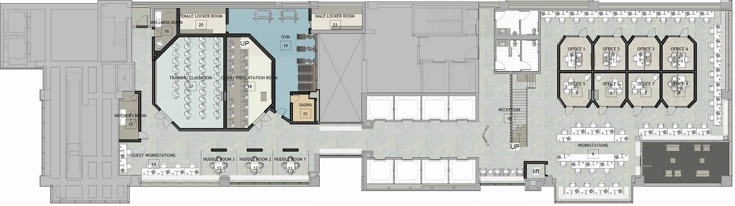 My wild card space is a gym. I chose this to be my wildcard space as less than 5% of adults participate in 30 minutes of physical activity a day, and only 1 in 3 adults receive the recommended amount of physical activity each week. I want my employees to be healthy and happy and know that their employers care about them and their health.