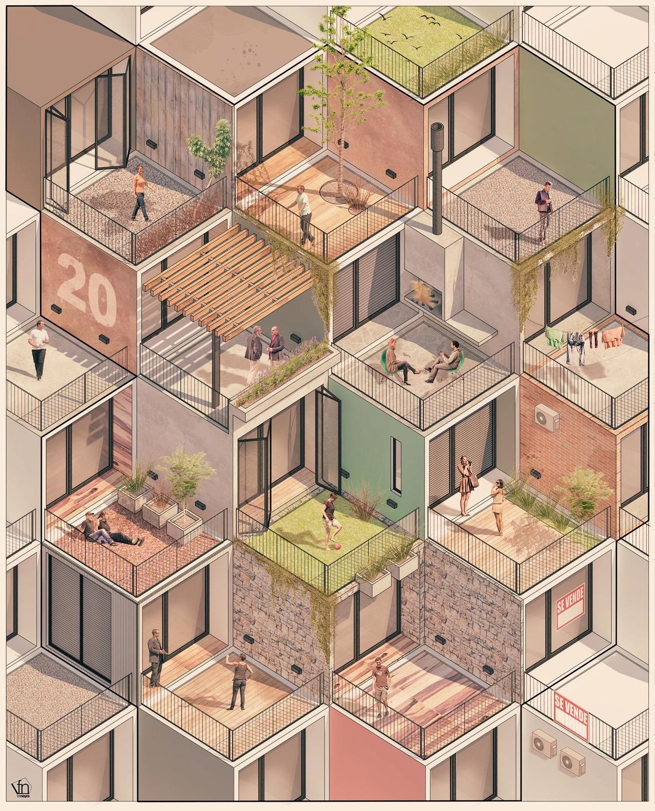 l diseño permite integrar el contexto dentro de la ropuesta, dejando que la zona central contenga n árbol de la zona.
