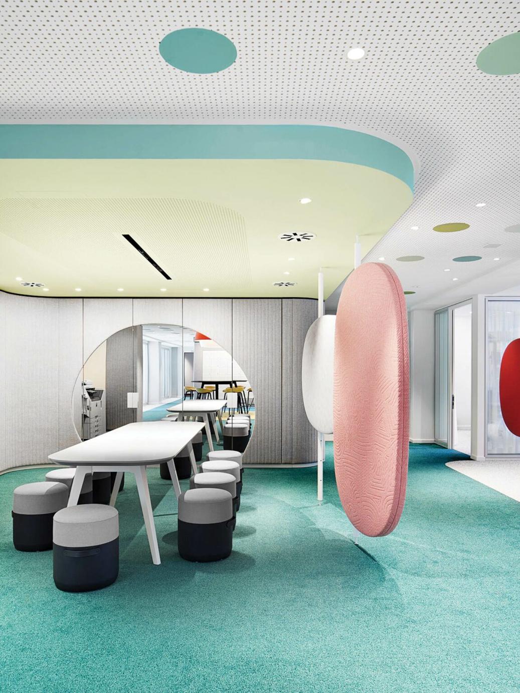 Tonos cercanos a la naturaleza reducen el estrés, confort e inciden sobre la percepción del espacio como un edificio saludable. Tonos como el rojo captan la atención del receptor.
