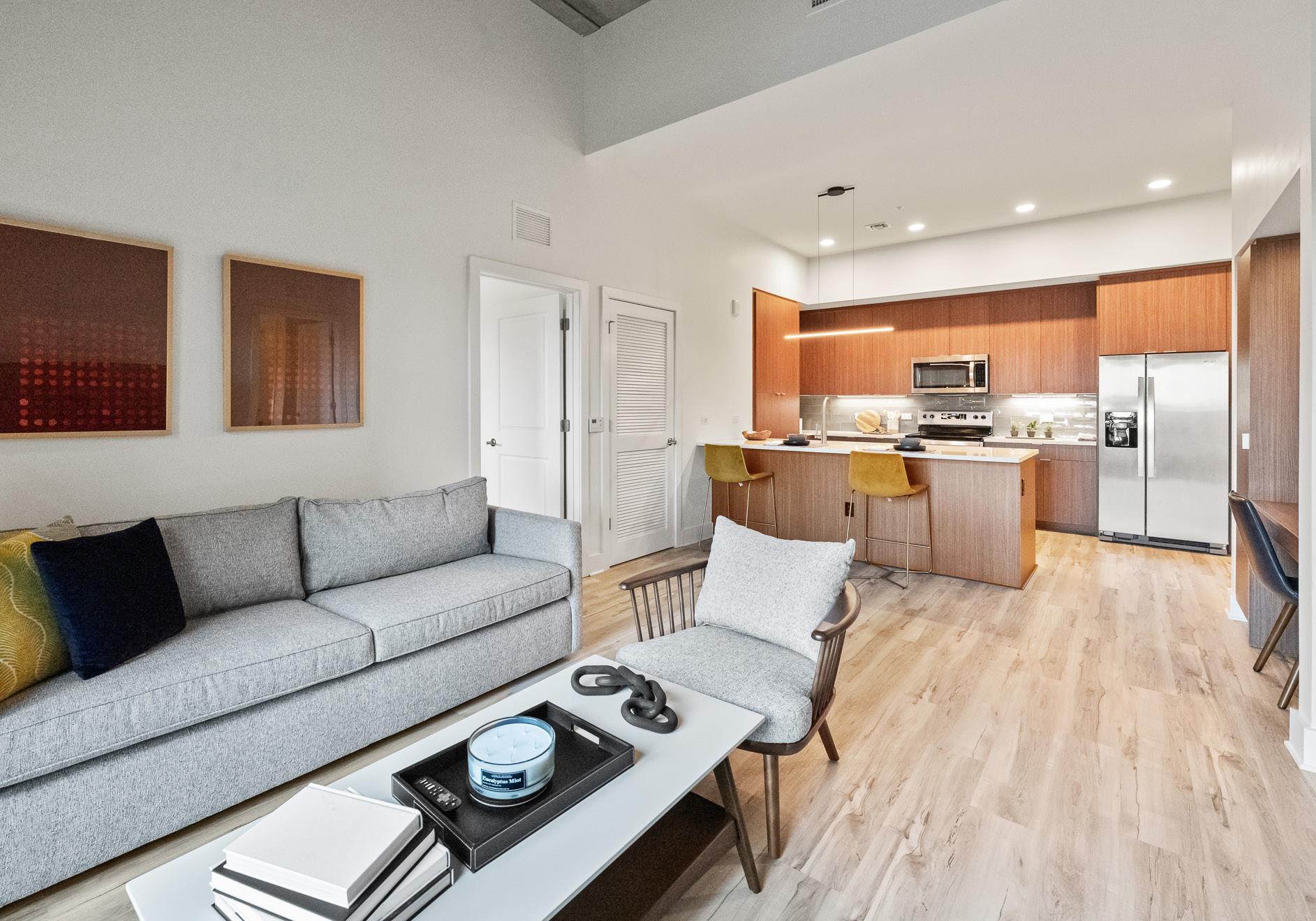 Inside, 88 meticulously designed residences redefine modern-urban living. Dramatic floor-to-ceiling windows flood the interiors with natural light, framing sweeping views, and establishing a seamless connection between indoor and outdoor spaces. Residences on the 7th level offer expansive private lawn terraces—unusual for urban living—while those on the 8th floor and above feature terrace-style balconies that float above the city.