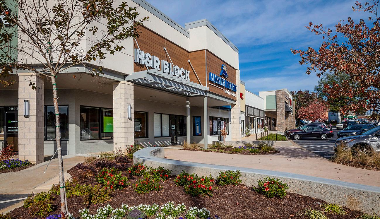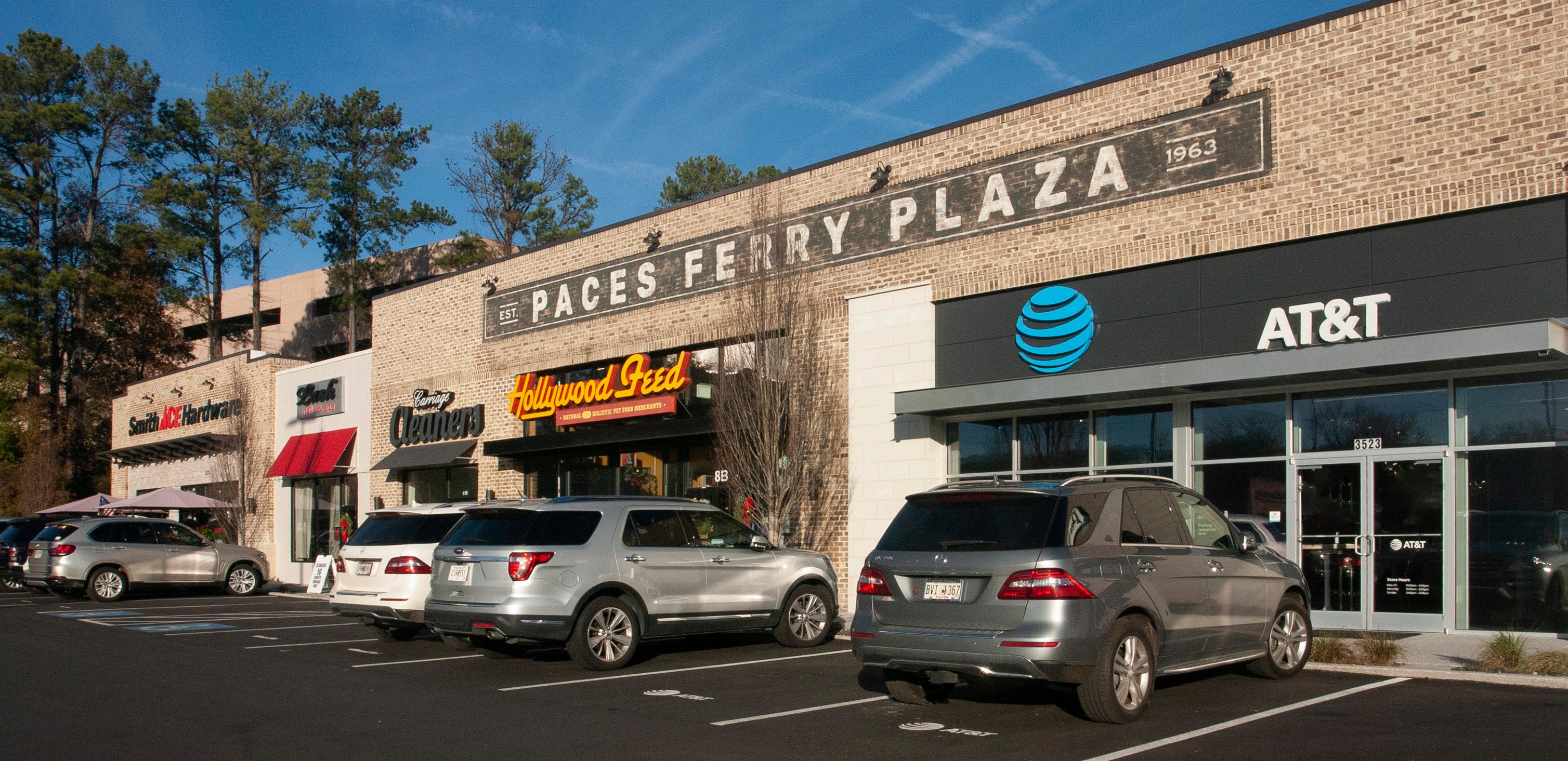 Paces Ferry Plaza, a 63,254-square-foot retail center, was renovated with an updated village aesthetic.
