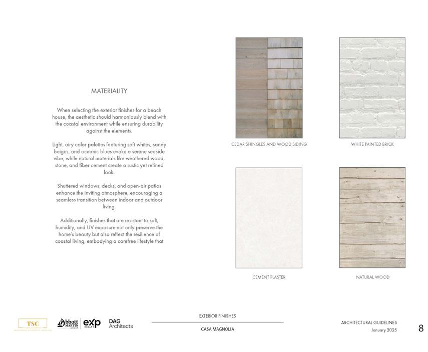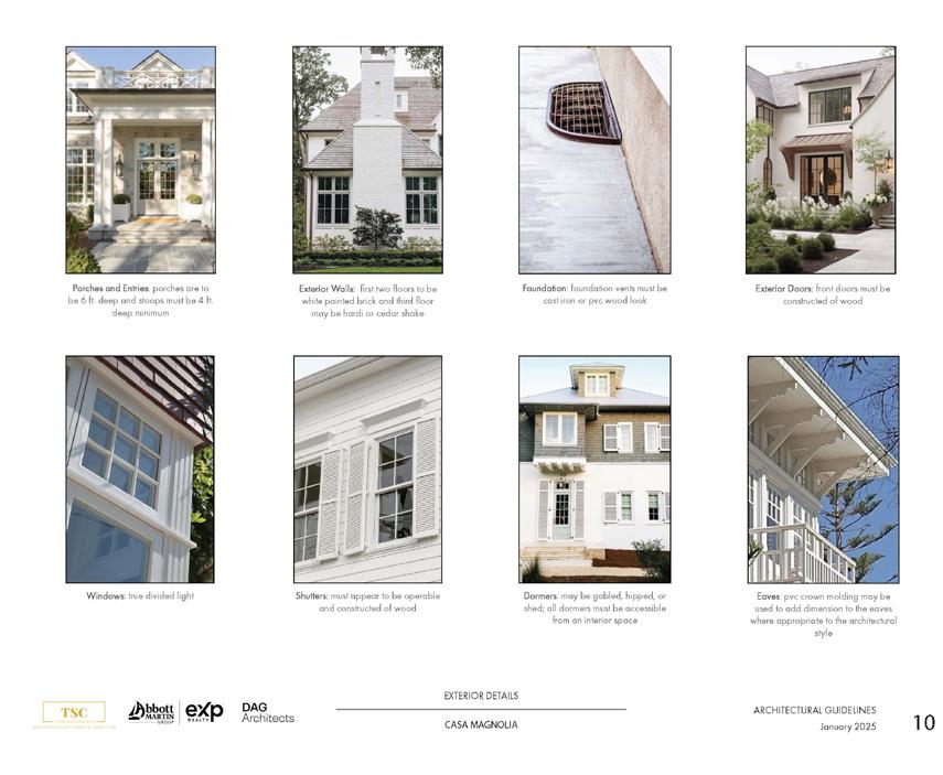 Our guidelines included architecture details for individual residences and community buildings as well as the exterior finishes and details. Each building should be elegantly scaled and proportioned in form and mass with detailing and color that enhances and embraces the natural setting. It ensures the quality of Casa Magnolia homes will enhance the overall brand and value of the development as a whole.