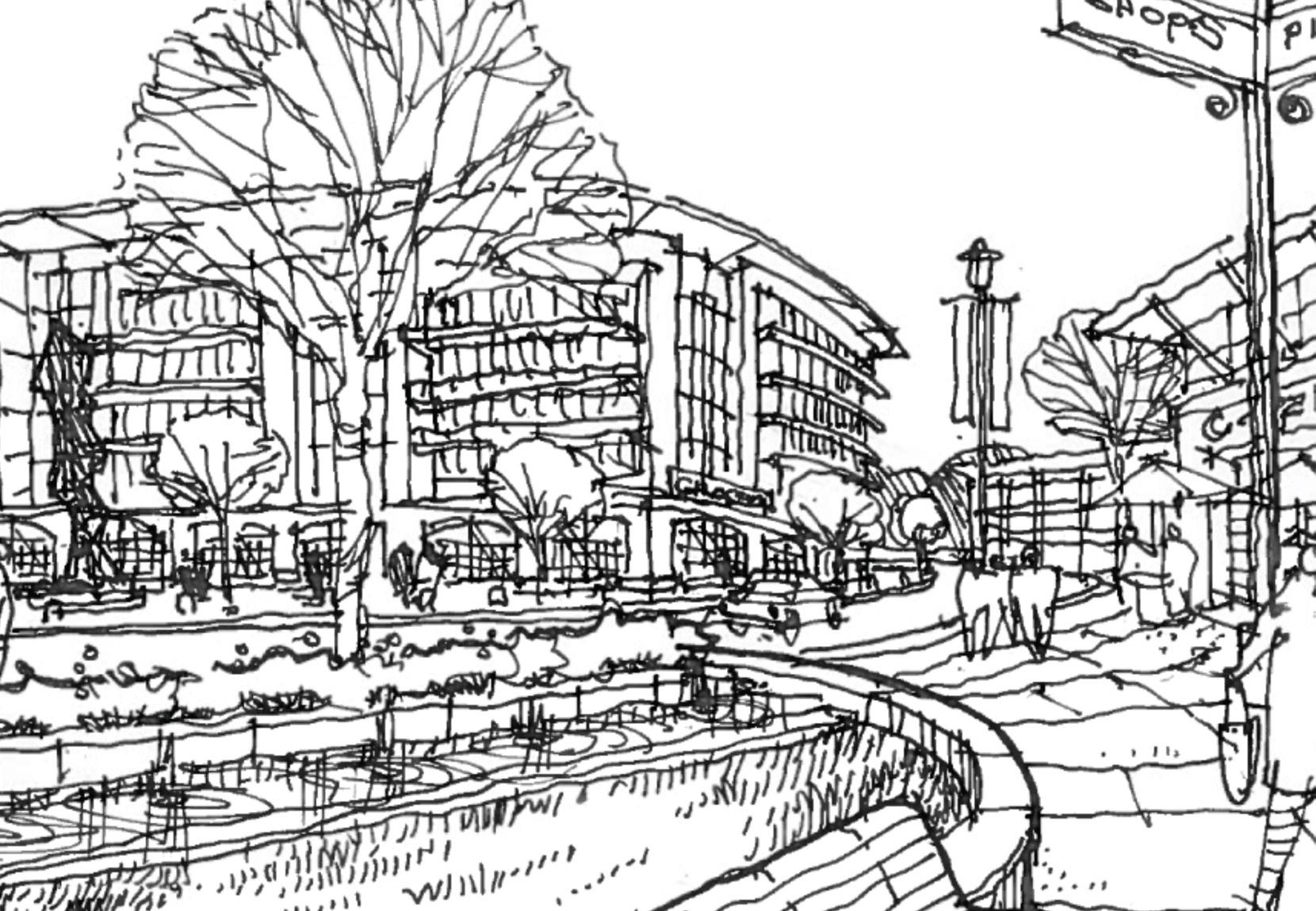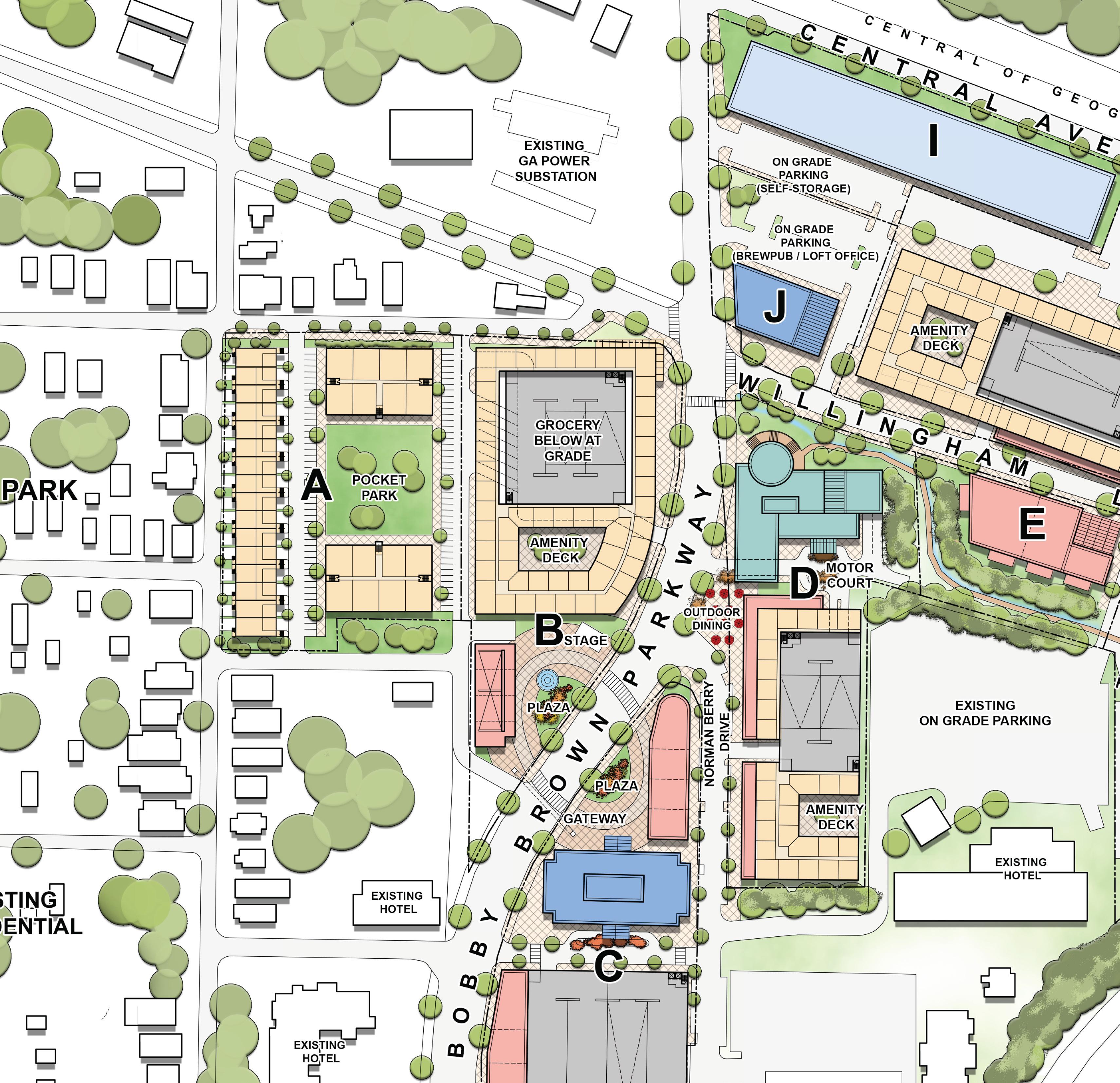 Town Center design that blends smart growth, green living, and pedestrianfriendly spaces taking inspiration from Asheville’s unique downtown architecture.