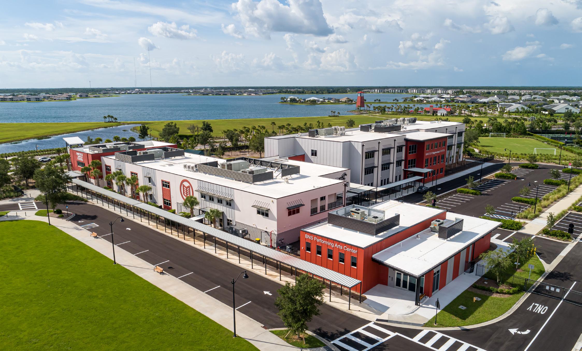 Designed in collaboration with STUDIO+, the Babcock Ranch expansion completes the campus vision as part of a master-planned community with three designated school sites. The entire campus is thoughtfully organized around a central green lawn—a gathering space that serves as the heart of student life.