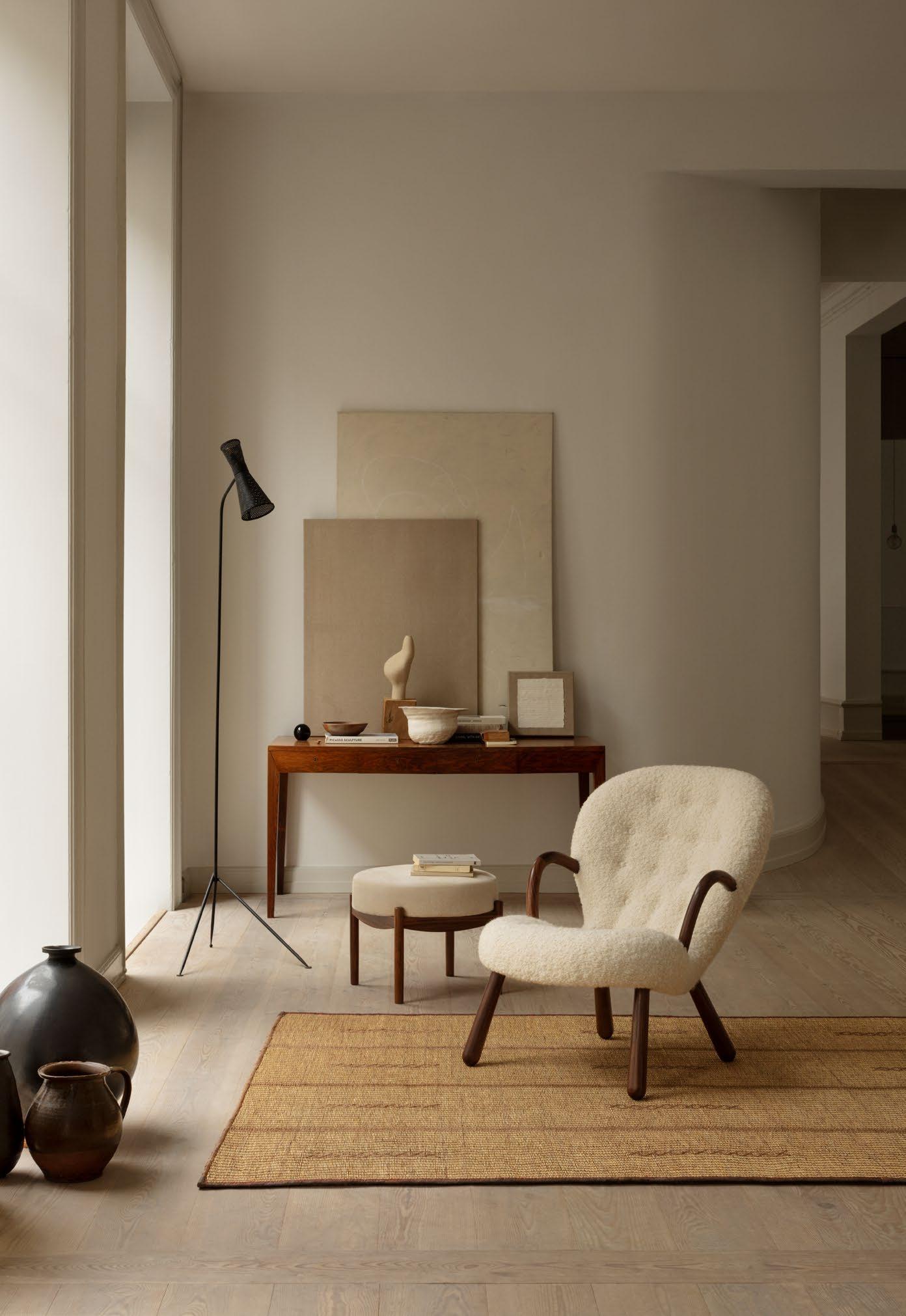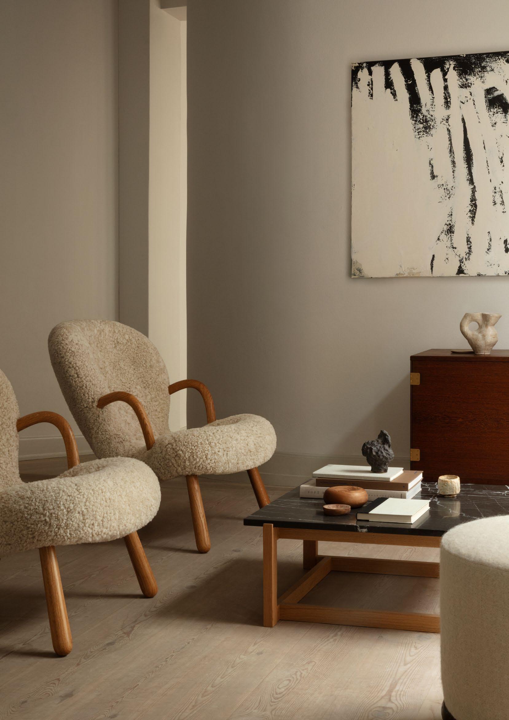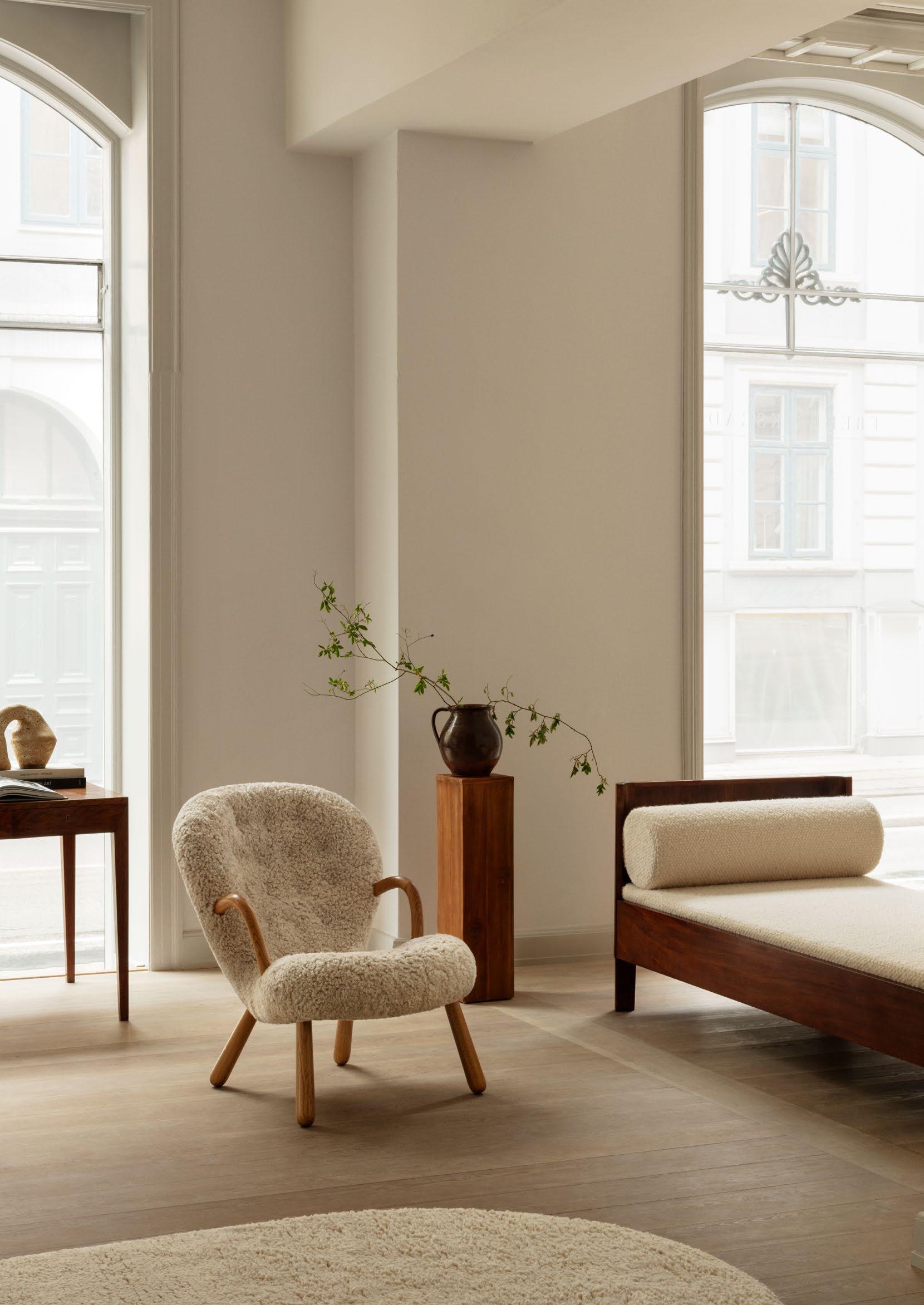 The cornerstone of our collection is the iconic Clam Chair – a unique piece of Danish design history with an intriguing backstory. The Clam Chair was designed in 1944 in Copenhagen by Danish upholsterer Arnold Madsen. As he had no formal design training, Arnold first brought his design to life by forming a plaster model by hand. This allowed him to fully visualise the chair’s unique, organic shape.