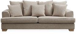 Flottur hornsófi með drapplituðu áklæði. Opið hægra eða vinstra horn. 297x241x85 cm
