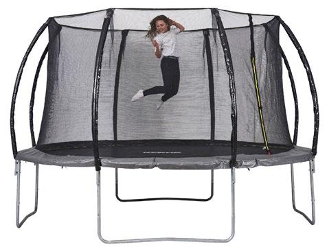 Trampólín með neti og fótum úr Ø38 mm galvaníseruðu stáli. Hámarksþyngd er 150kg. Hæð trampólínsins er 89cm. Gormarnir eru 140mm að lengd, 3.2mm þykkir og 23,5mm í þvermál.