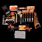 Sterkbyggð verkfærataska með stóru aðalhólfi. Sérhólf fyrir handsög og 10" spjaldtölvu. Tveir litlir hliðarvasar; einn losanlegur með plastboxi fyrir skrúfur eða annað smátt sem þarf að geyma. Þrjú hólf framan á töskunni. Taskan er á hjólum og með háu handfangi sem er hægt að setja niður.