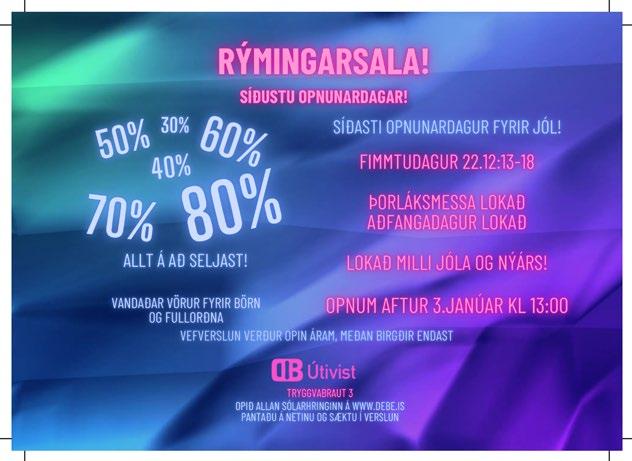 Gleðileg jól Gleðileg jól 51. tbl. 55. árg. 21. desember - 28. desember 2022 dagskrain@dagskrain.is 464 2000 vikubladid.is WWW.SVEFNOGHEILSA.IS Svefn heilsa & SOFÐU VEL UM JÓLIN GERIÐ GÆÐA- OG VERÐSAMANBURÐ F L UG E L D A M AR K A Ð U R H JA LT E Y R A R G Ö TU 1 2 B JA R G A ÐU Á R A M Ó TUNU M F L U G E L D A R www.sulur.is Skoðið úrvalið á