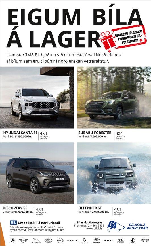 Akureyri Aðalnúmer heilsugæslunnar er: 432 4600 Vaktsímanúmer er: 1700 LÖGREGLAN/NEYÐARSÍMI: 112 Hefur þú upplýsingar um fíkniefni? Hringdu þá í síma: 800-5005 SJÚKRAHÚSIÐ Á AKUREYRI Aðalnúmer: 463 0100 // www.sak.is Opnunartími verslana á Glerártorgi: Virka daga: 10:00 - 18:30 Laugardaga: 10:00 - 17:00 Sunnudaga: 13:00 - 17:00 APÓTEK Á AKUREYRI Lyfja Glerárgötu 34, sími: 461 3920 LYF & HEILSA Glerártorgi, sími: 461 5800 APÓTEKARINN Hafnarstræti 95, sími: 460 3452 AKUREYRARAPÓTEK Kaupangi, Mýrarv., sími: 460 9999 APÓTEKARINN Hrísalundi sími: 462 2444 SLÖKKVILIÐ/NEYÐARSÍMI: 112 POLICE/FIRE DEPARTMENT EMERGENCY LINE: 112 www.vikubladid.is Fréttir, fróðleikur og auglýsingar ÞJÓNUSTA // ÍÞRÓTTIR // MENNING vikubladid.is Mán // 26. desember // kl. 21:00 // Jólatónleikar Hvanndalsbræðra Þri // 27. desember // kl. 21:00 // Killer Queen Mið // 28. desember // kl. 21:00 // Úlfur Úlfur Fim // 29. desember // kl. 21:00 // Birkir Blær Fös // 30. desember // kl. 21:00 // Helgi og hljóðfæraleikararnir mak.is listak.is Þorláksmessutónl. Bubba Morthens 21/12 kl. 20:00 Töfrarnir í aukaskrefinu, 10 - 16 ára 7/1 kl. 11:00 Töfrarnir í aukaskrefinu, fullorðnir 7/1 kl. 14:00 graenihatturinn.is SAMKOMUHÚS HOF ÞÓR - Selfoss// 16/1 kl. 19:15 1. deild körfu karla ÞÓR - Kórdrengir // 20/1 kl. 19:30 Grill 66 deild k. handb. KA - Hörður // 5/2 kl. 16:00 Olís deild karla KA/ÞÓR - HK // 14/1 kl. 15:00 Olís deild kvenna AMTSBÓKASAFNIÐ Á AKUREYRI Afgreiðslutímar í vetur 16.09-15.05 Mánudaga til föstudaga: 8:15-19 (Sjálfsafgreiðsla kl. 8:15-10:00) Laugardaga 11:00-16:00 Sunnud.: Lokað ATH! Ertu á leið úr bænum og búið að loka bókasafninu? Þá er möguleiki að skila í Eymundsson, Akureyri GLERÁRLAUG Mánudaga til fimmtud. 6:45 - 8, 18 - 21 Föstud. 6:45 - 8, 18 - 19:30 Laugard. og sunnud. Lokað HRAFNAGIL Mánud. til fimmtud. 6:30 - 8 & 14 - 22 Föstud. 6:30 - 8 & 14 - 19 Helgar: 10 - 19 ÞELAMÖRK Mánud. til fimmtud.: 17 - 22:30 föstud. Lokað Laugard. 11 - 18 Sunnud. 11 - 22:30 Opnunartími: Mán. - Fös. kl. 06:45-21:00 Lau. og sun. kl. 09:00-19:00