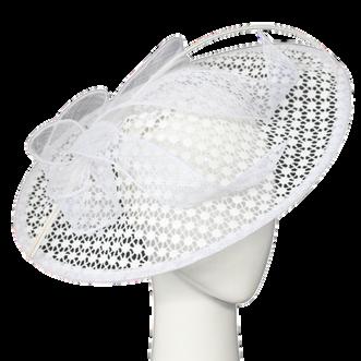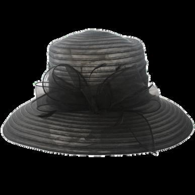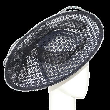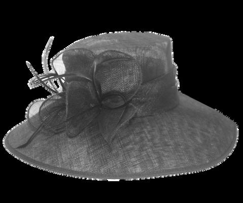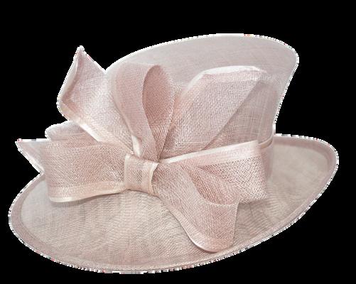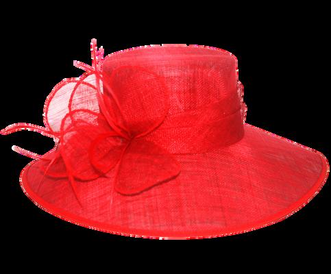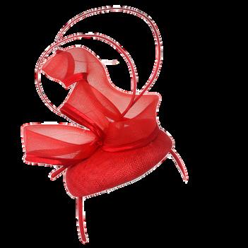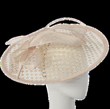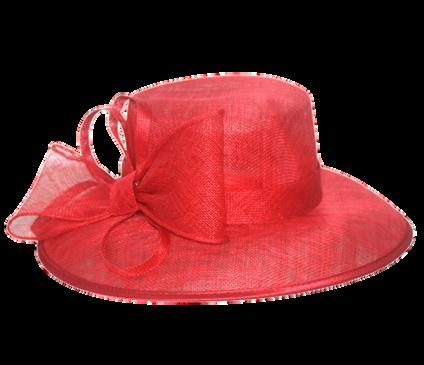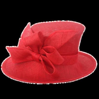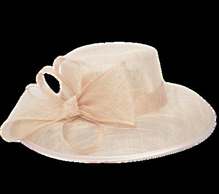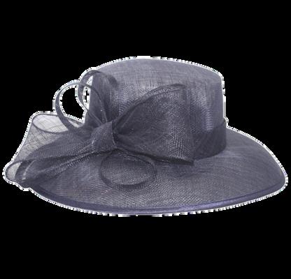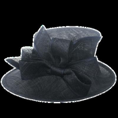 Medium brim sinamay hat with large bow trim Colours: Black, Champagne, Navy, Red.