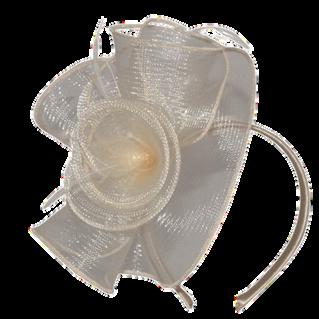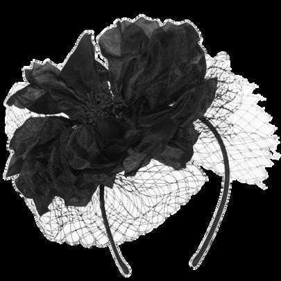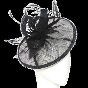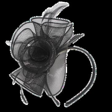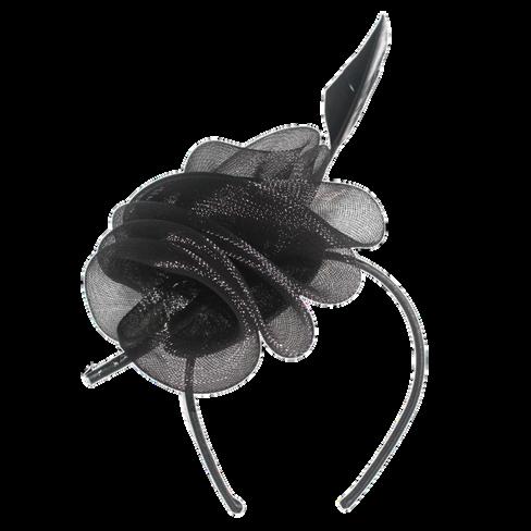 Large crinolin disk and flower on headb Colours: Black, Champagne