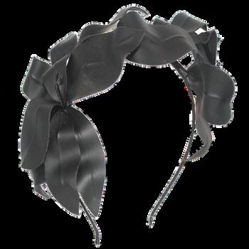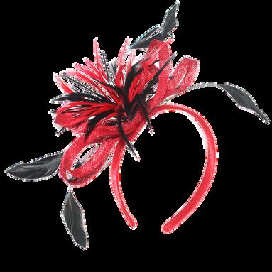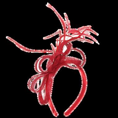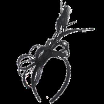 Crinolin swirls and quill on headband Colours: Black, Latte, Navy, Red