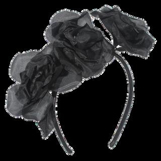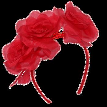Silk rose flowers on headband. Colours: Black, Cream, Red.
